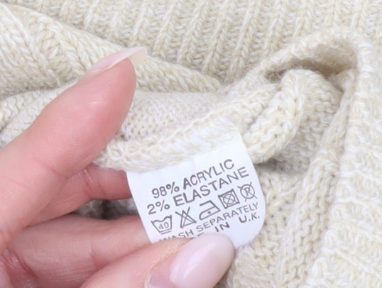 Envy Womens Beige Cardigan L Collared Knit Long Sleeve Jumper