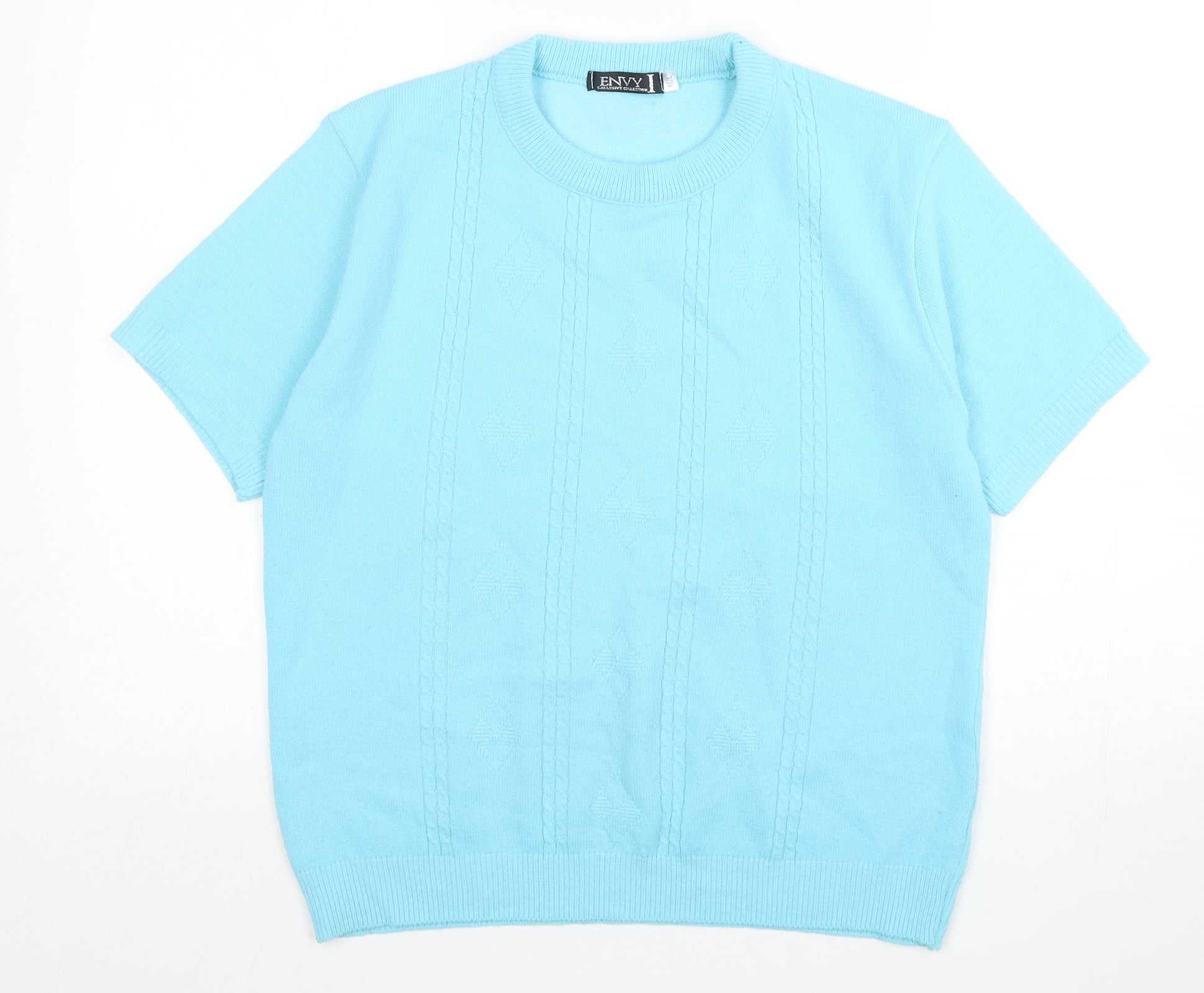 Envy Womens Blue Round Neck Acrylic Pullover Jumper Size M