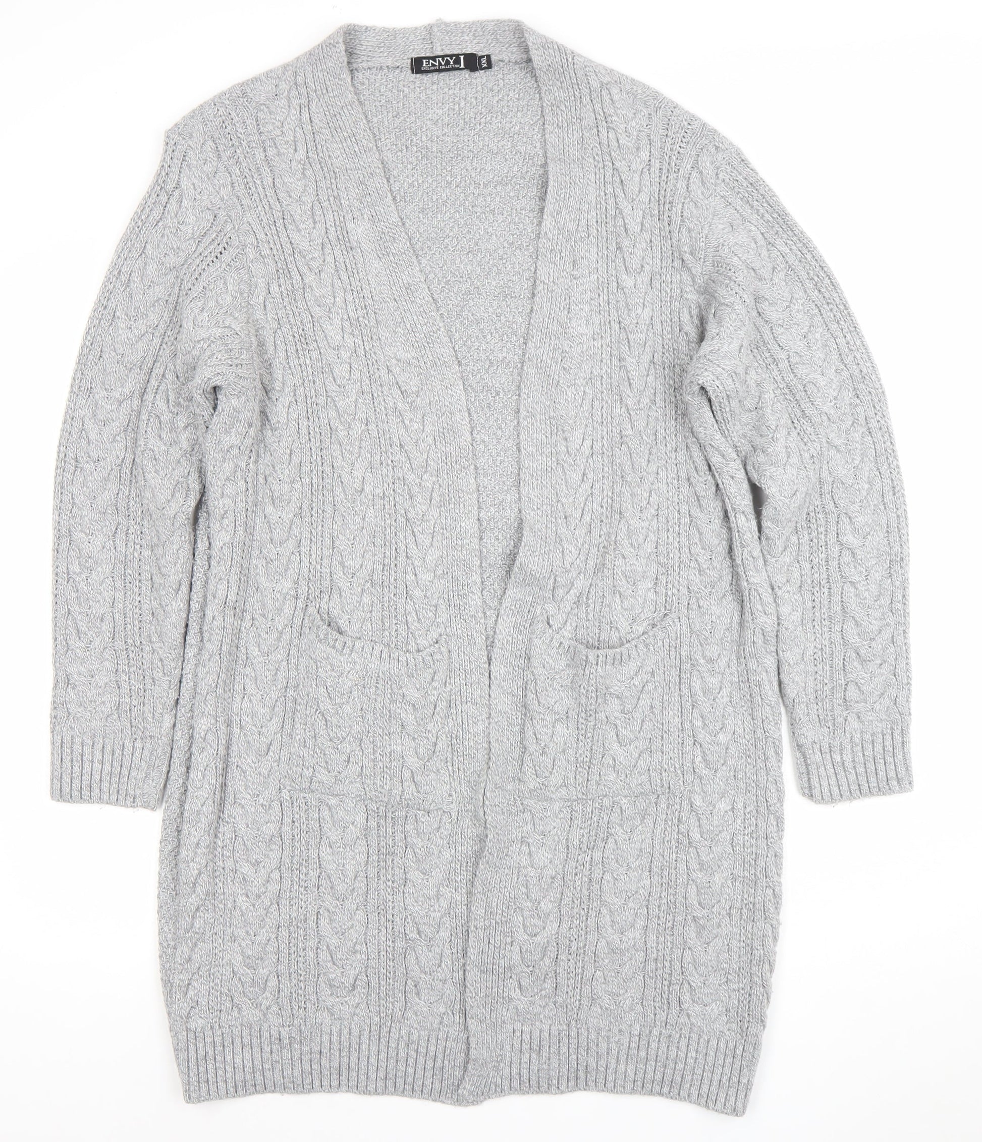 Envy Womens Grey 2XL Cable Knit Longline Open Cardigan