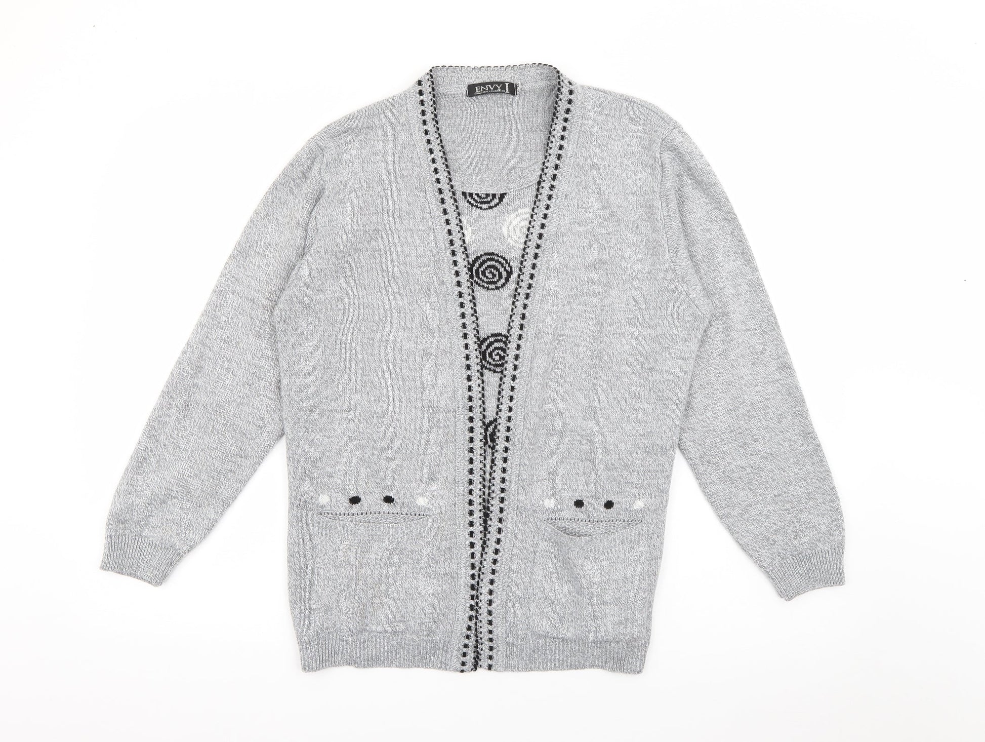 Envy Womens Grey Crew Neck Geometric Acrylic Pullover Jumper Size S