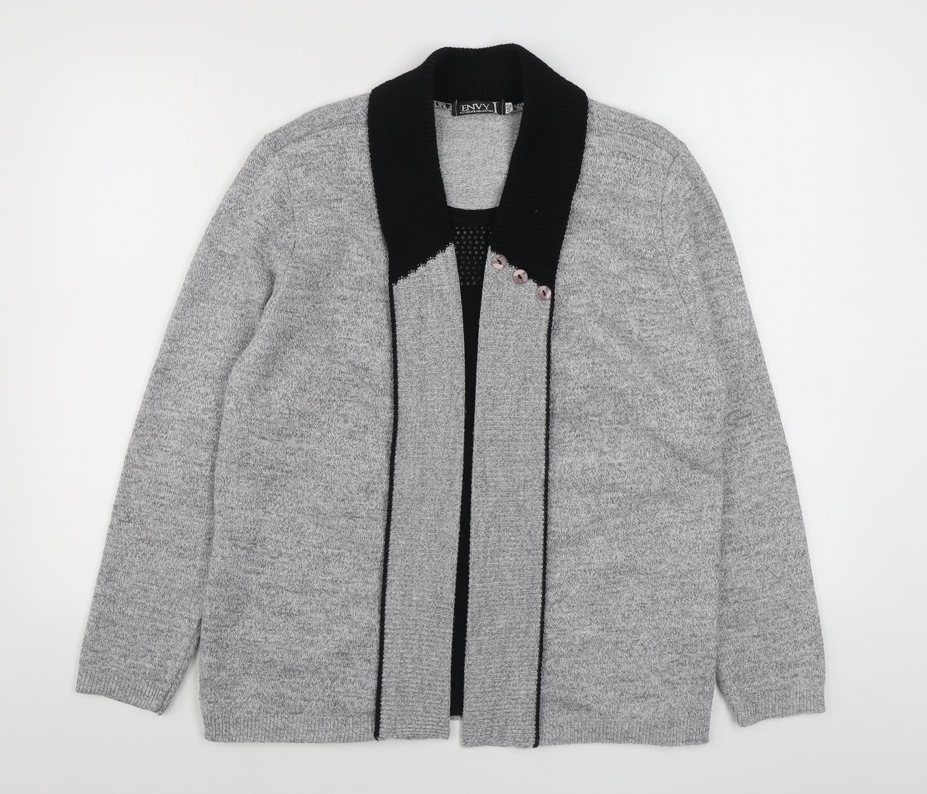 Envy Womens Grey V-Neck Acrylic Cardigan Jumper Size M