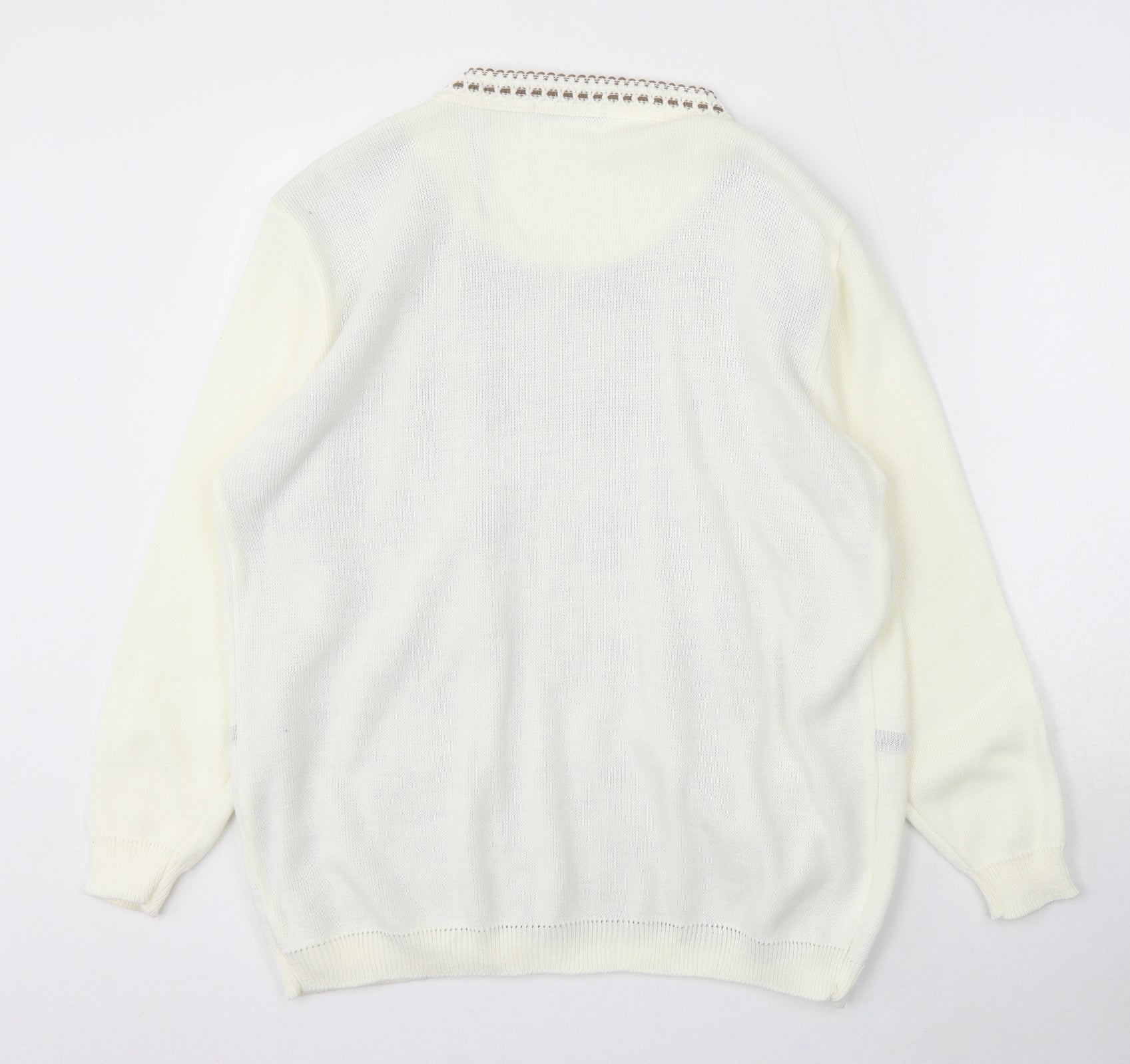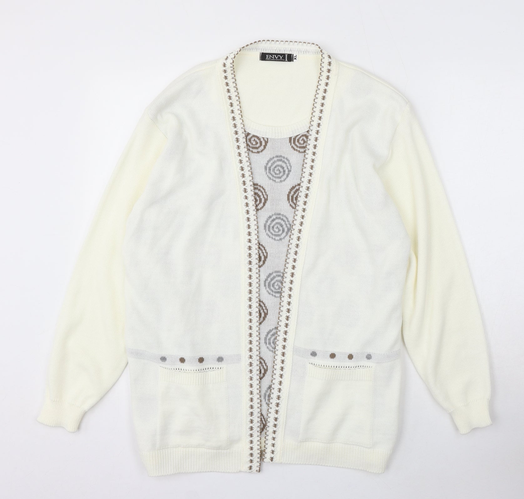 Envy Womens Ivory Round Neck Acrylic Cardigan Jumper Size XL