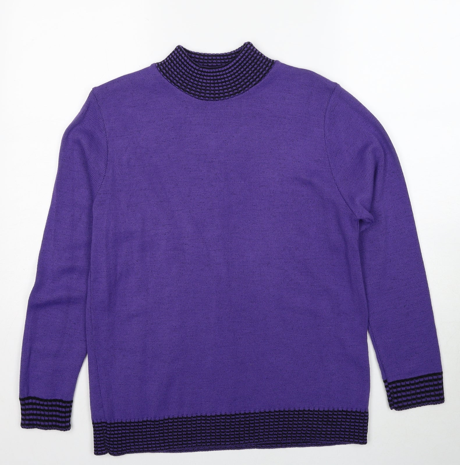 Envy Womens Purple Mock Neck Acrylic Pullover Jumper Size M
