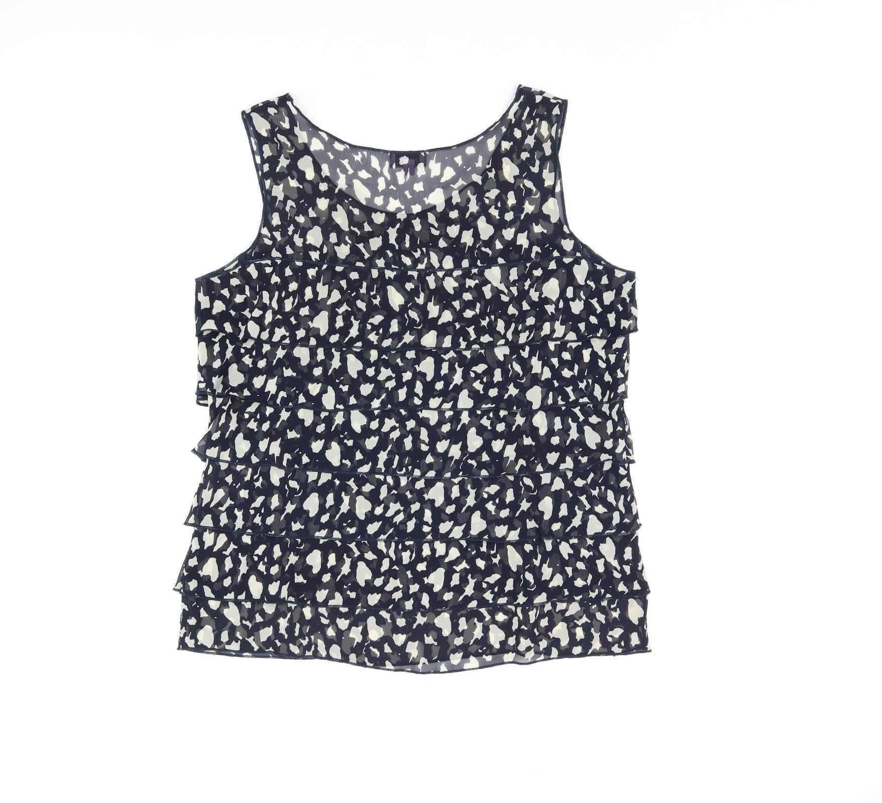 Epilogue Womens Blue Geometric Polyester Basic Tank Size 12 Round Neck - Frill Detail Sheer