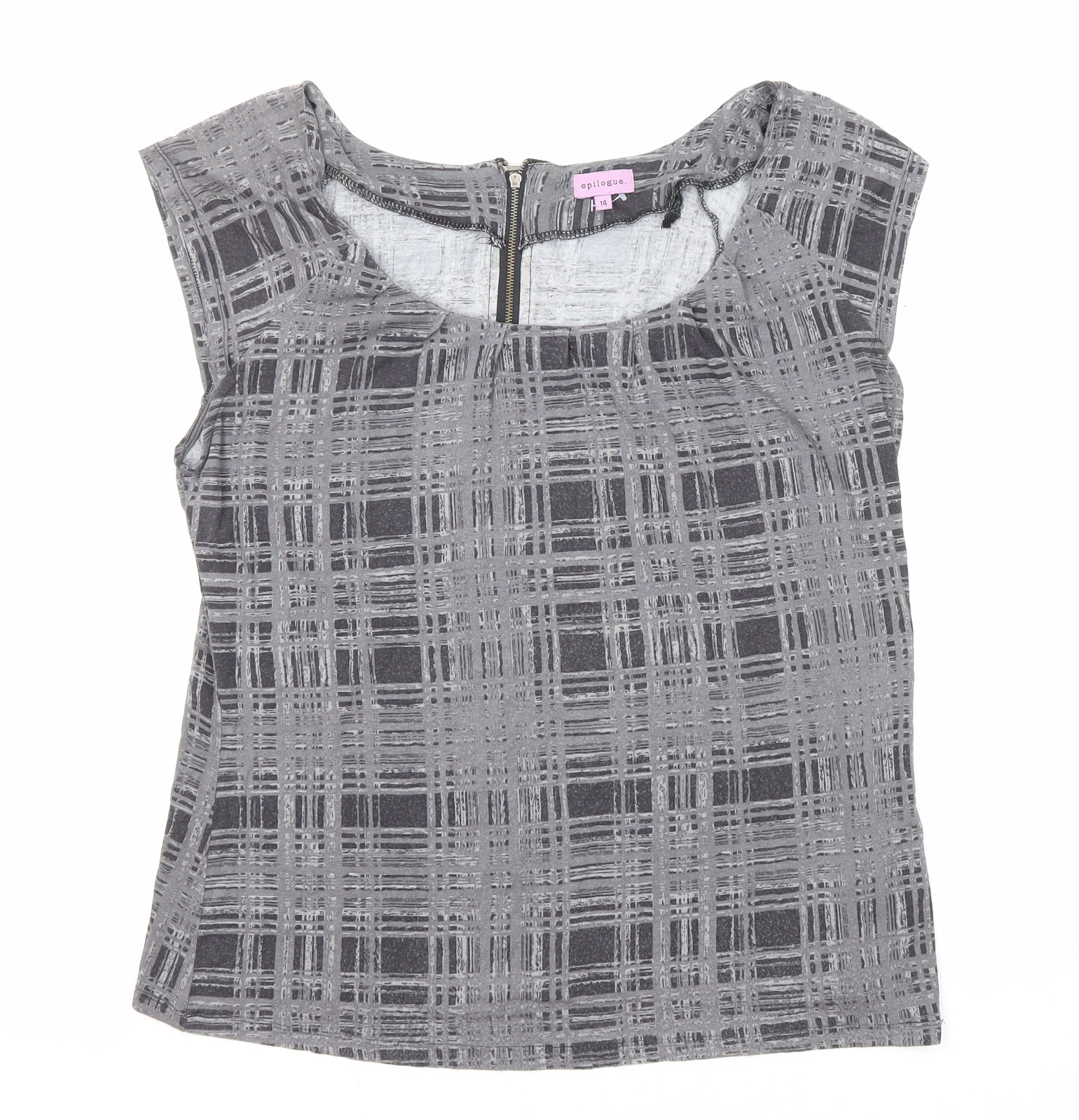 Epilogue Womens Grey Plaid Viscose Basic Blouse Size 14 Round Neck
