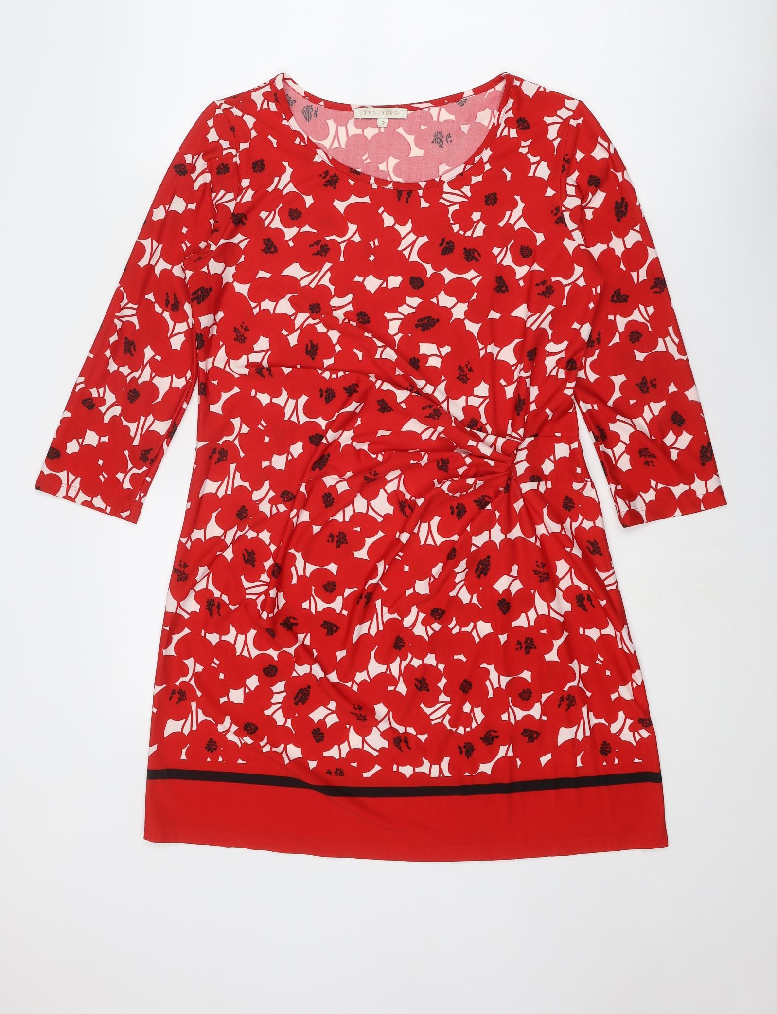 Epilogue Womens Red Floral Polyester Shift Size 12 Boat Neck Pullover