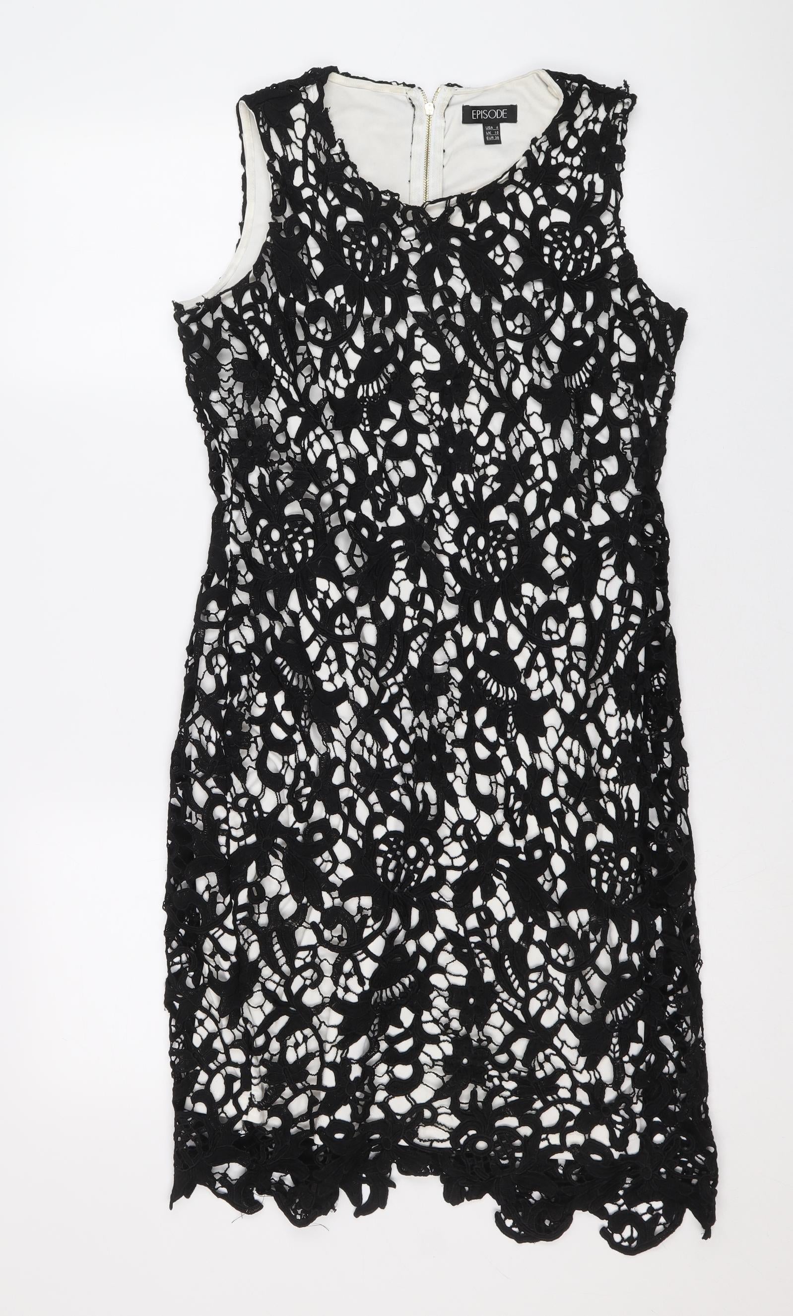 Episode Womens Black Geometric Polyester Sheath Size 10 Scoop Neck Zip