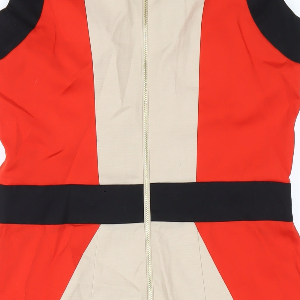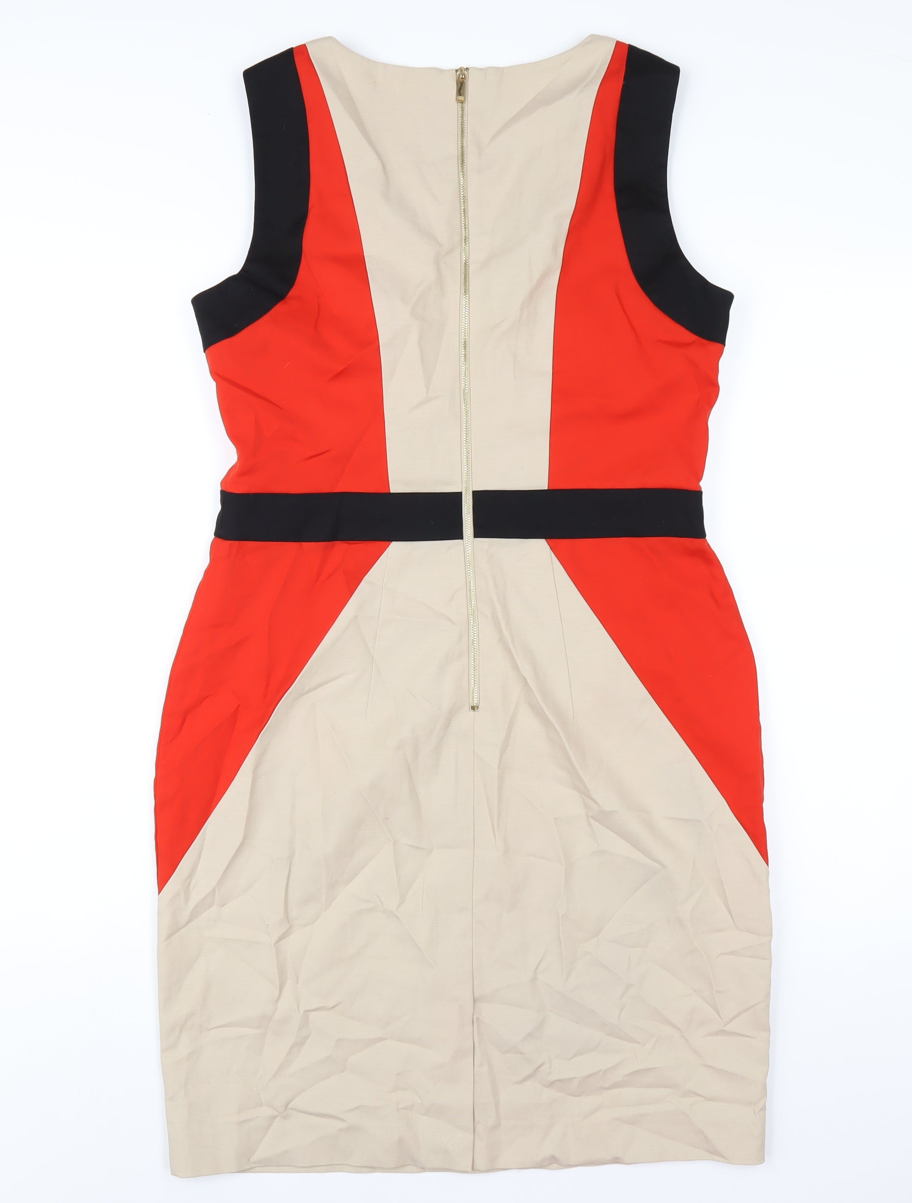 Episode Womens Multicoloured Cotton Pencil Dress Size 14 Round Neck Zip