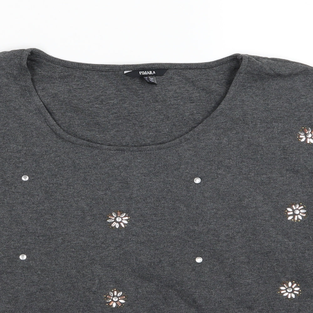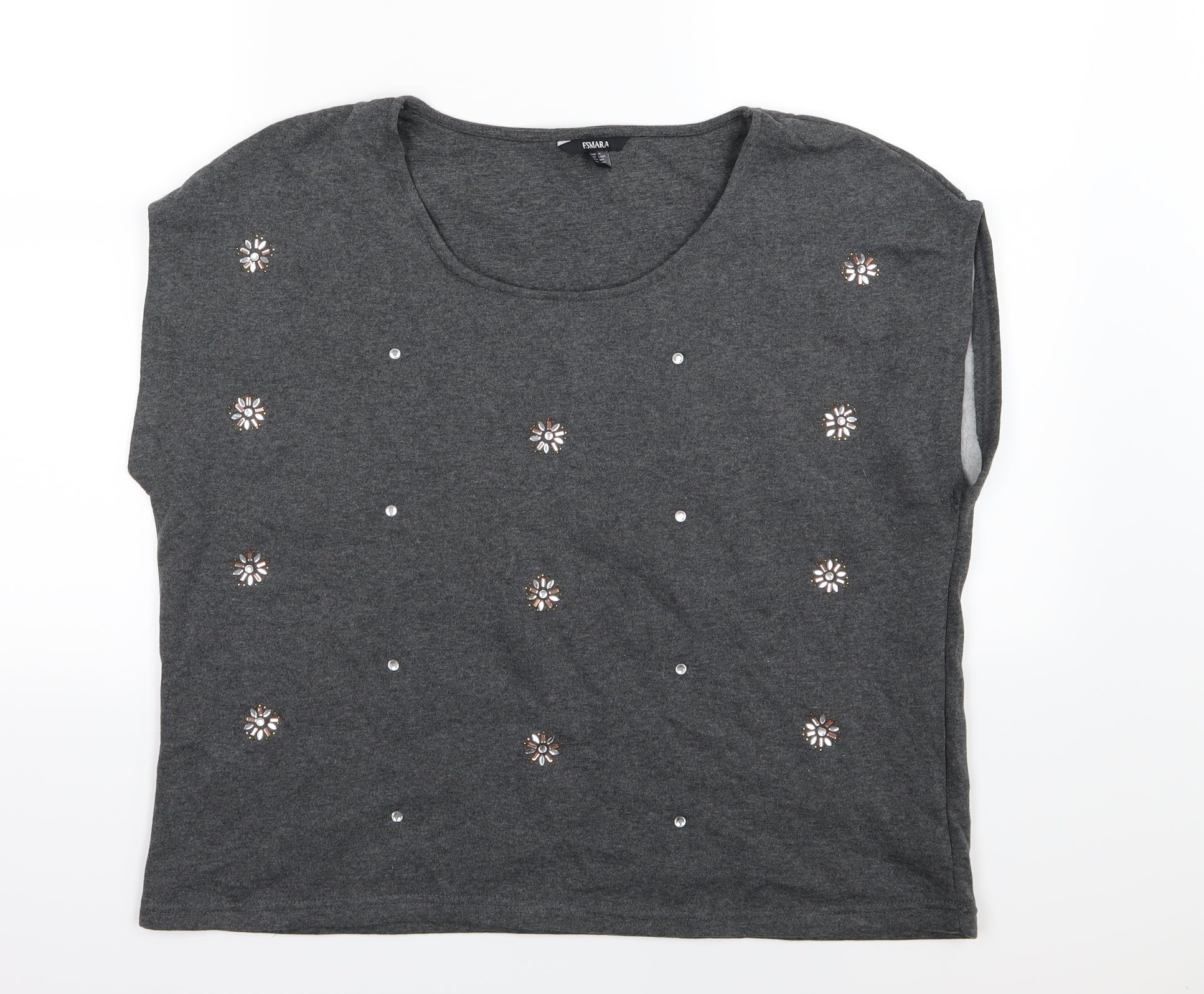 ESMARA Womens Grey Floral Jersey Pullover Sweatshirt Size L