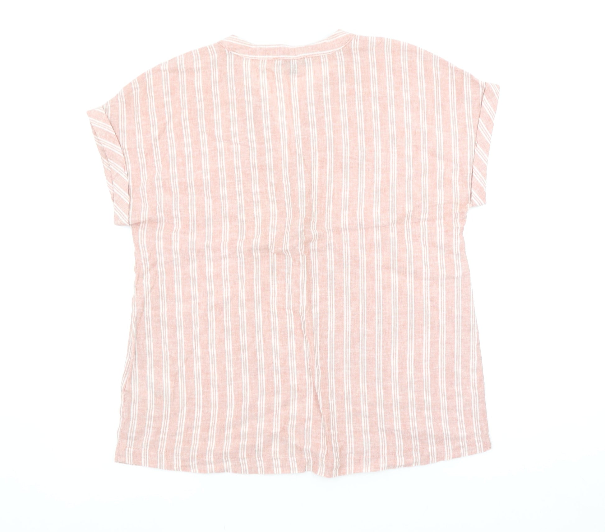Esmara Women's Pink Striped Linen Blend V-Neck Tunic Blouse Size 10