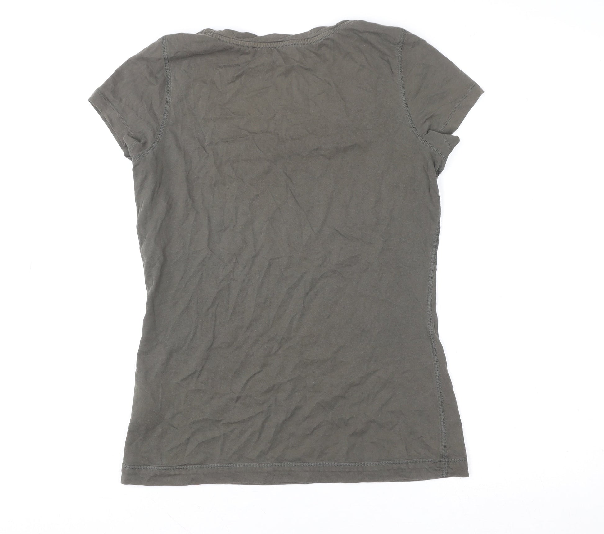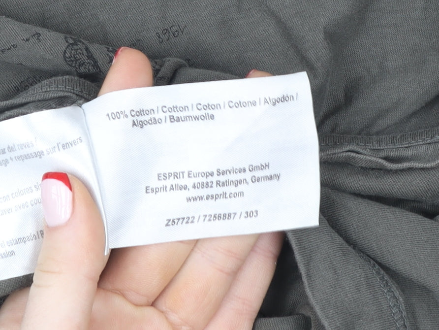 Esprit Women Grey Floral Butterfly Cotton T-Shirt L
