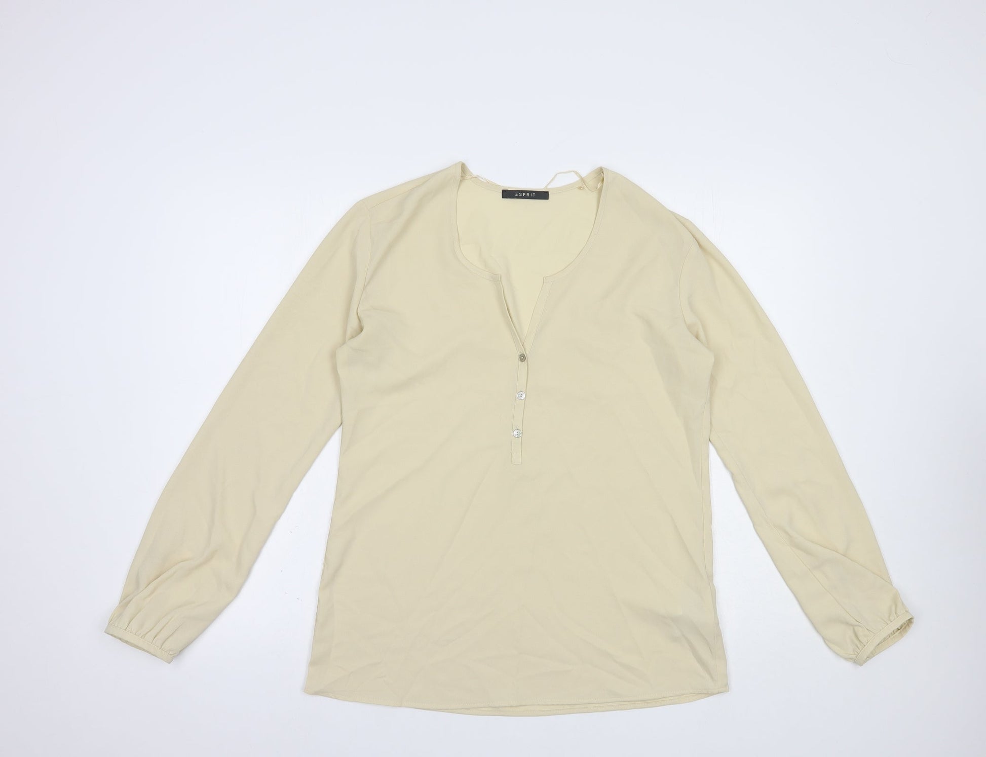 Esprit Womens Beige Polyester Basic Blouse Size 12 V-Neck