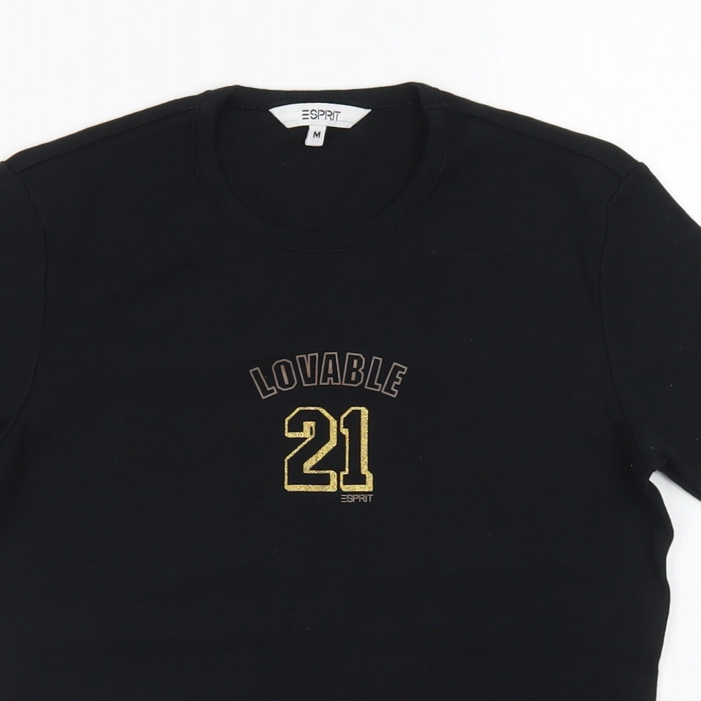 Esprit Womens Black Cotton Basic T-Shirt Size M Crew Neck