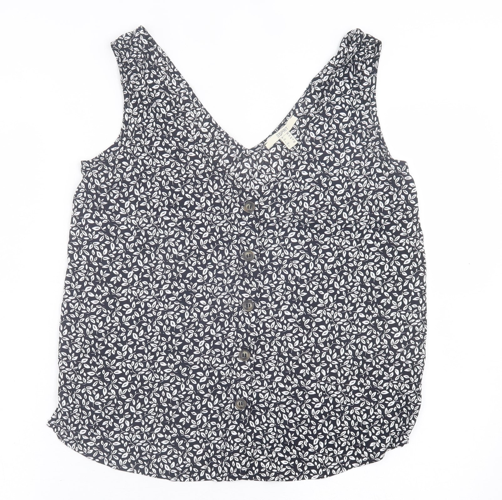 Esprit Womens Black Geometric Viscose Basic Tank Size 10 V-Neck
