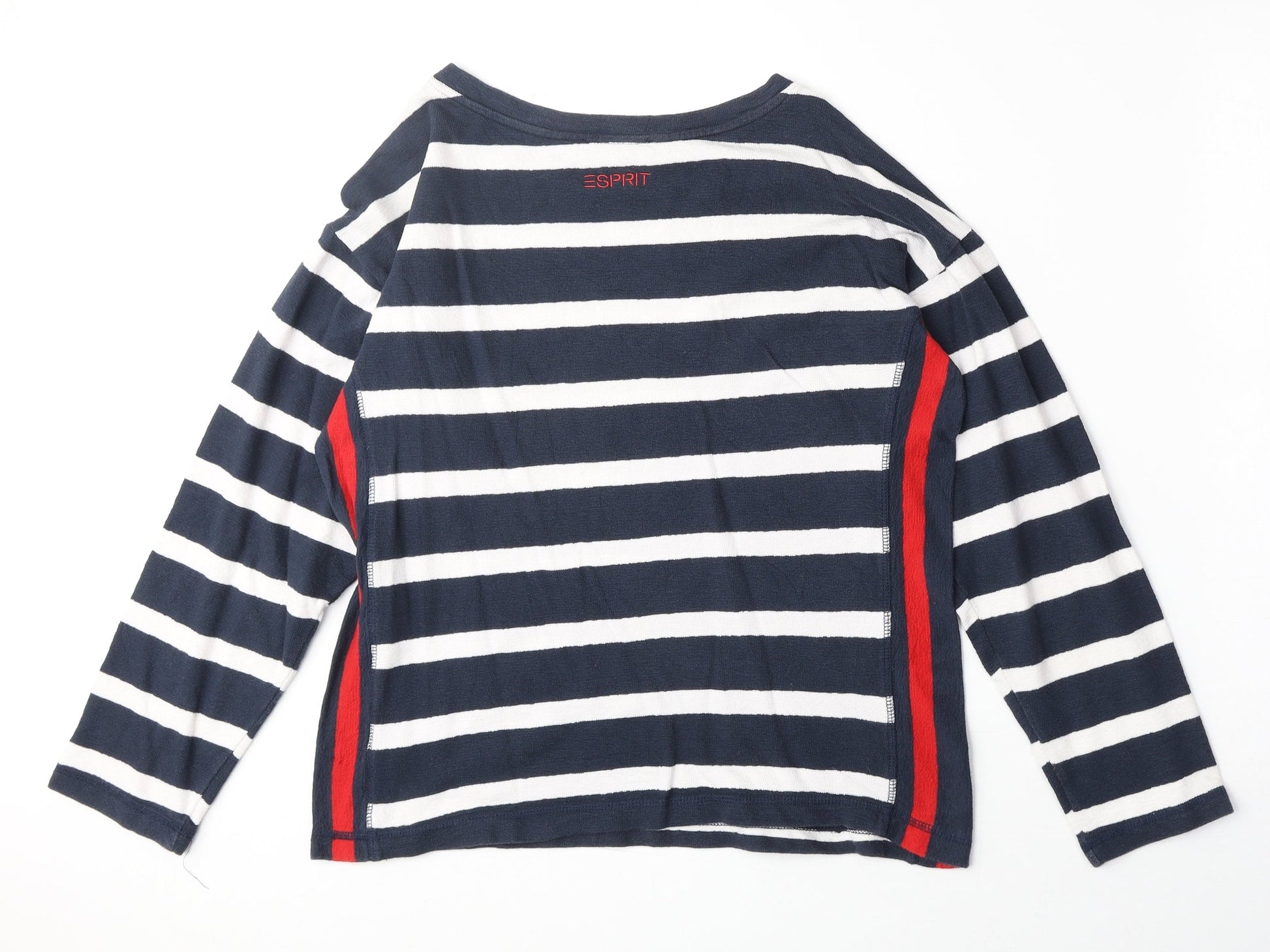 Esprit Womens Blue Striped 100% Cotton Basic T-Shirt Size S Round Neck