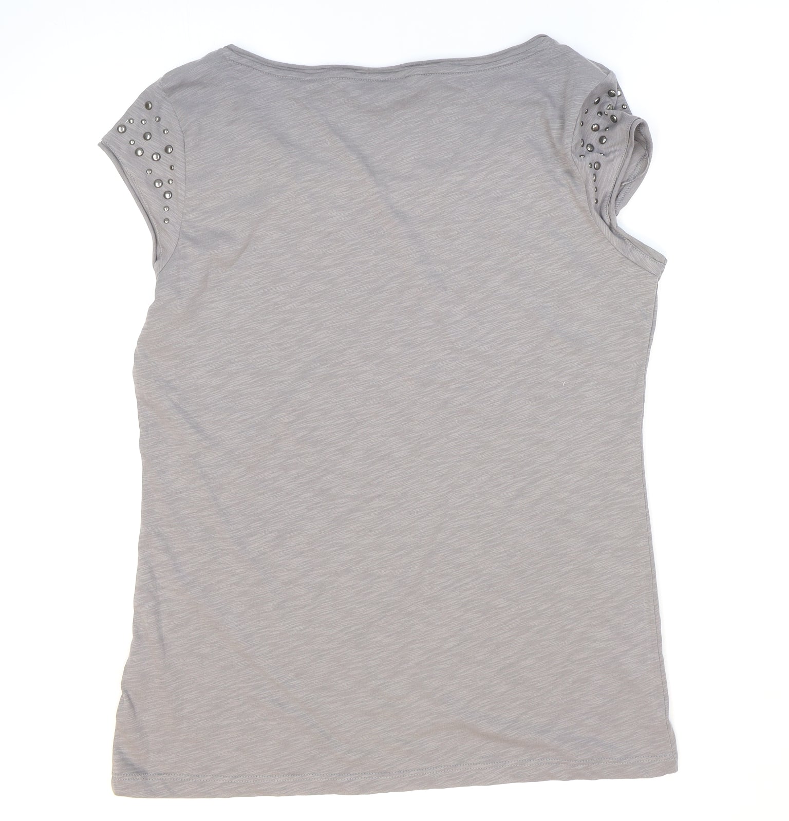 Esprit Womens Grey Cotton Basic T-Shirt Size XL Round Neck
