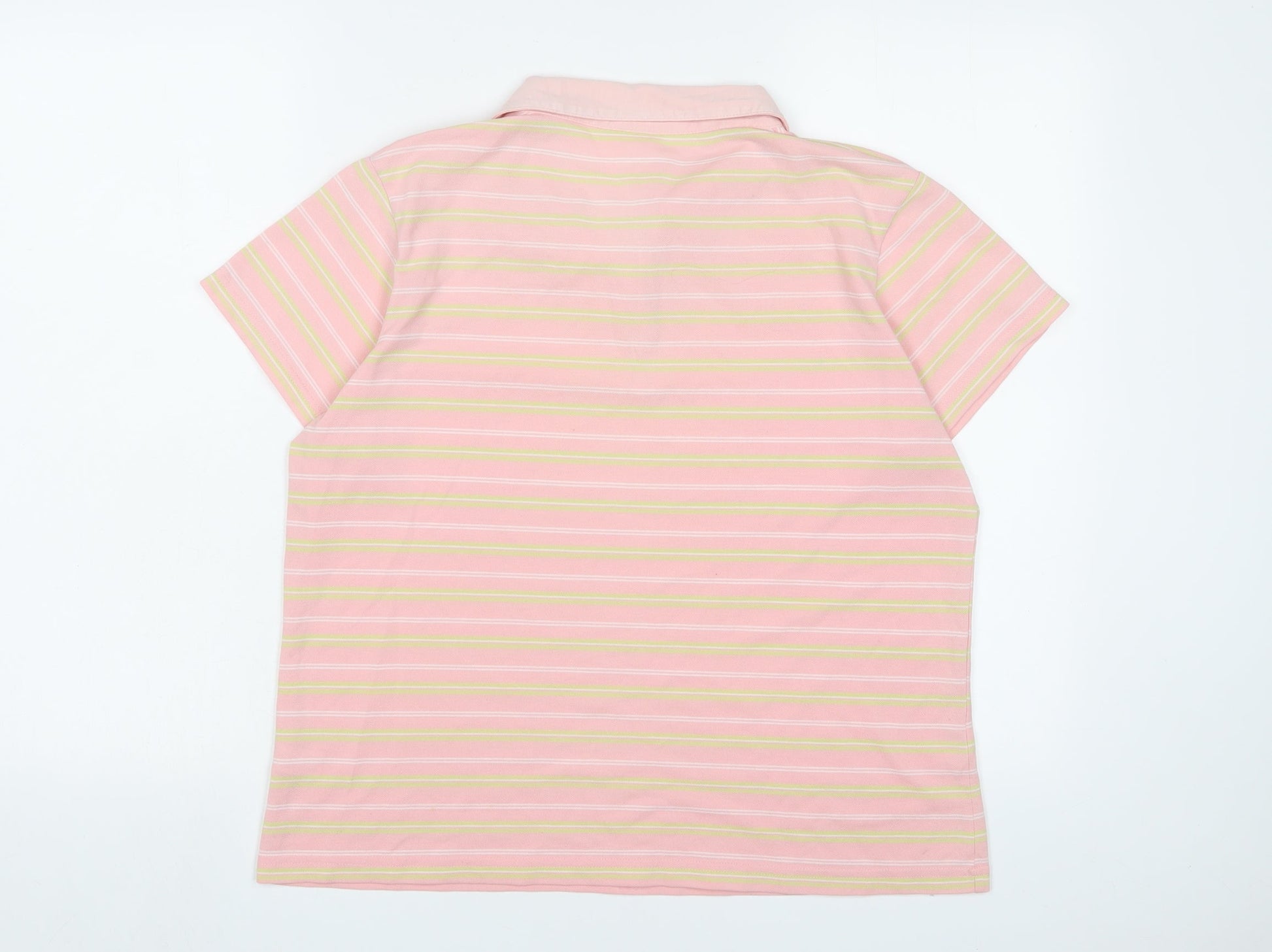 Ethel Austin Womens Pink Striped Polyester Basic Polo Size M Collared