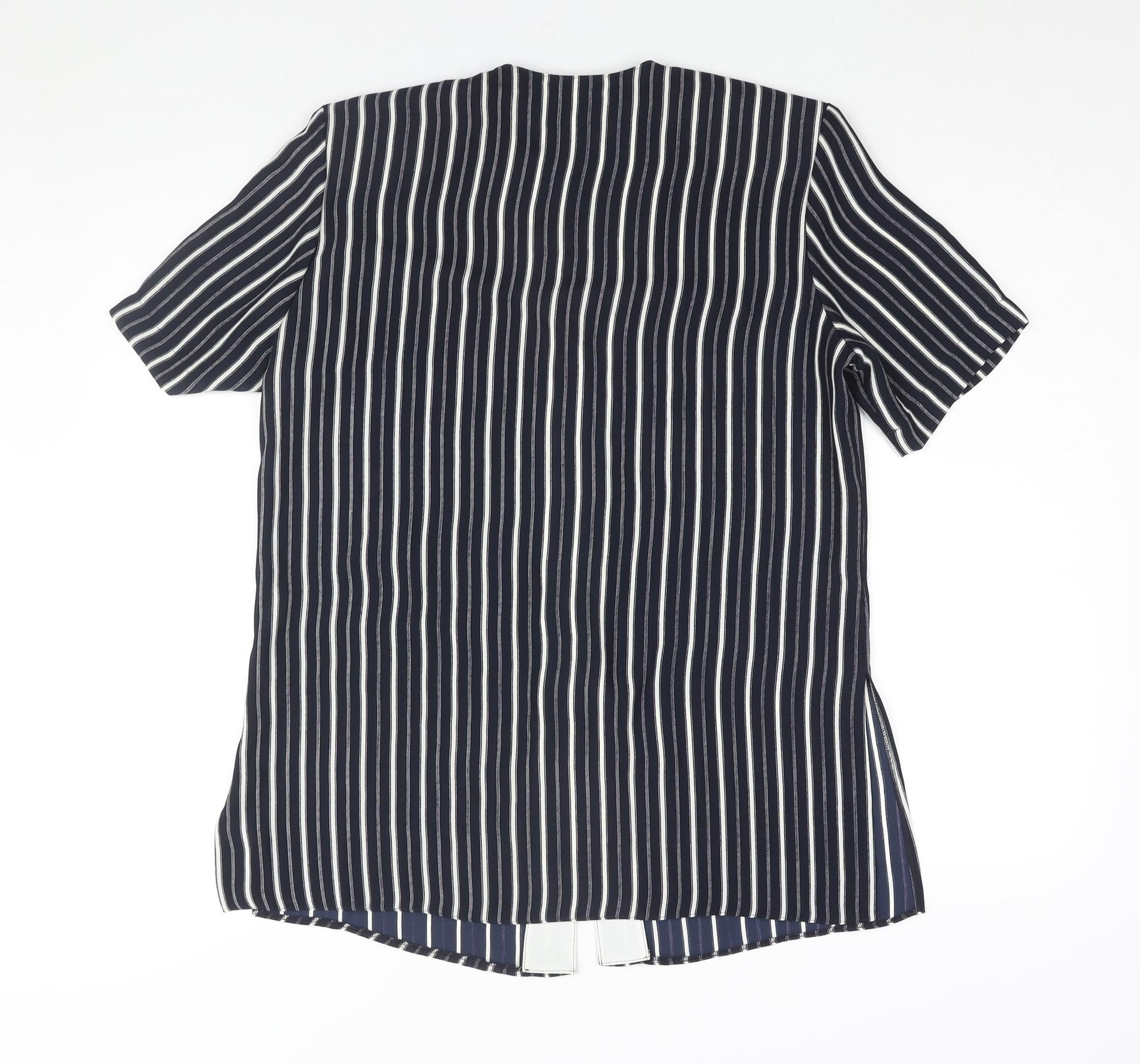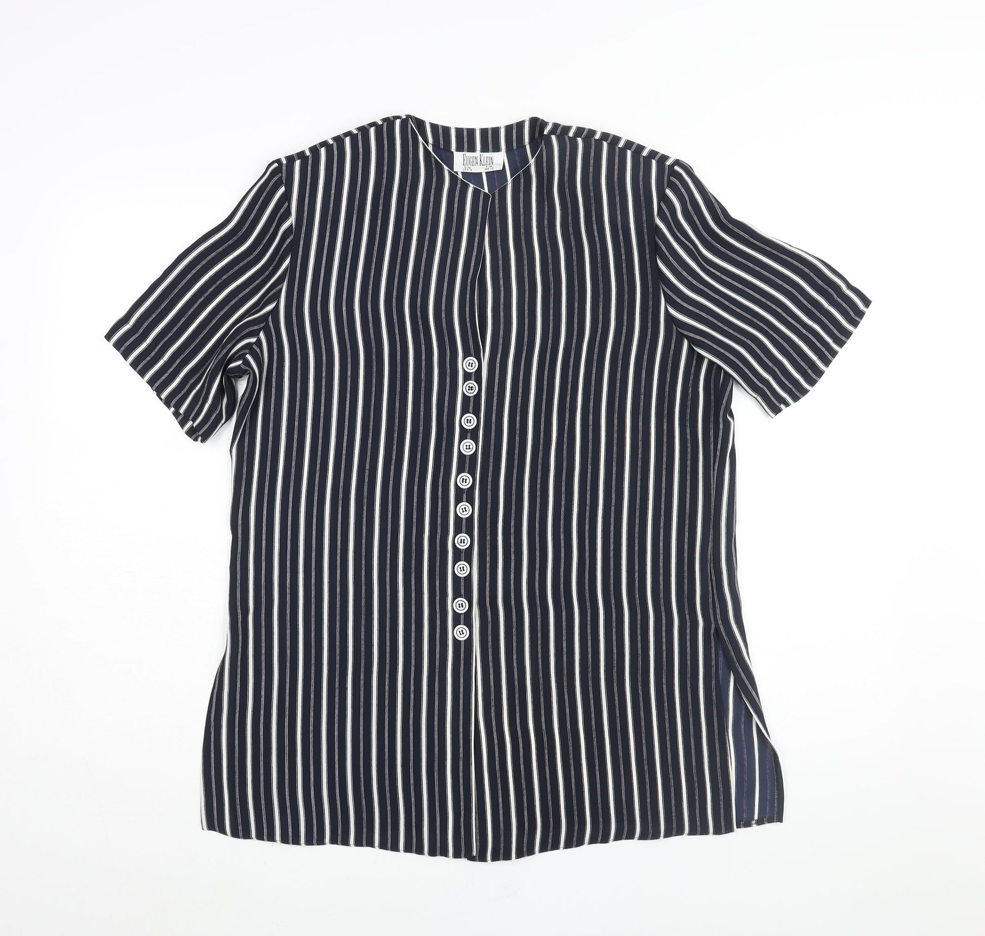 Eugen Klein Womens Blue Striped Polyester Tunic Blouse Size 10 Round Neck - Shoulder Pads Side Slits