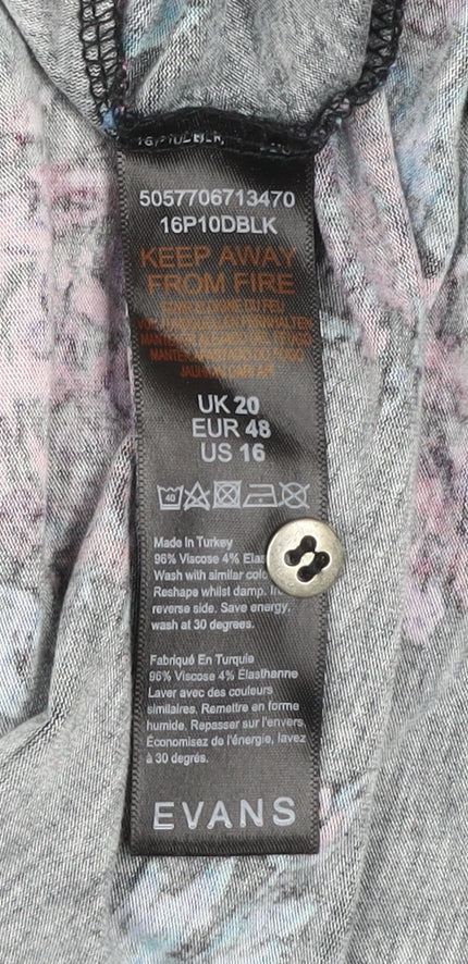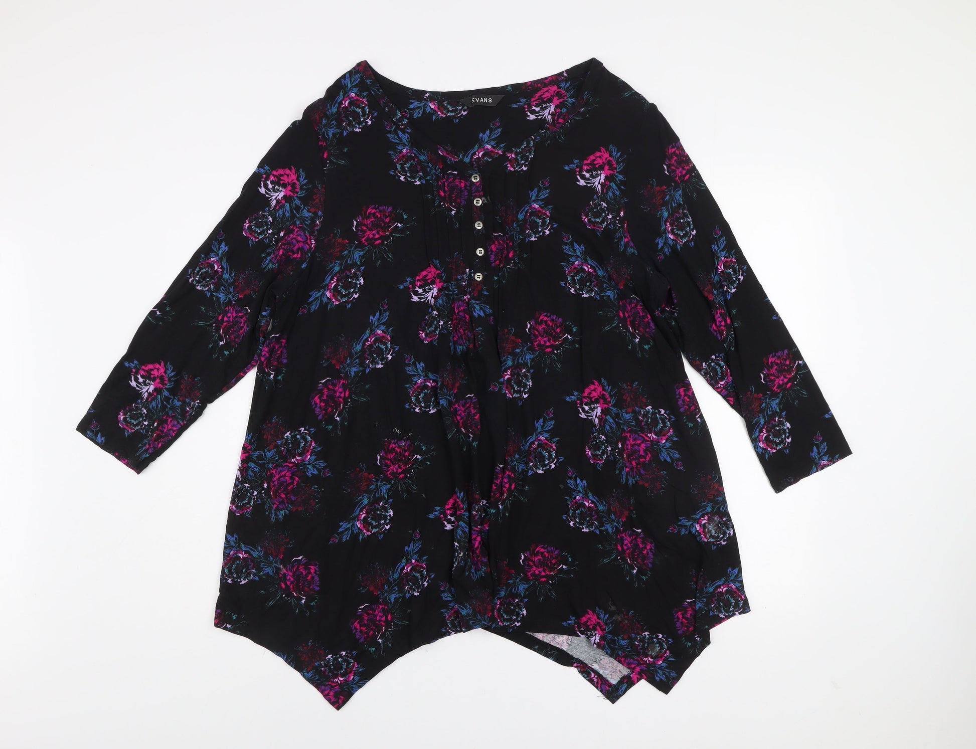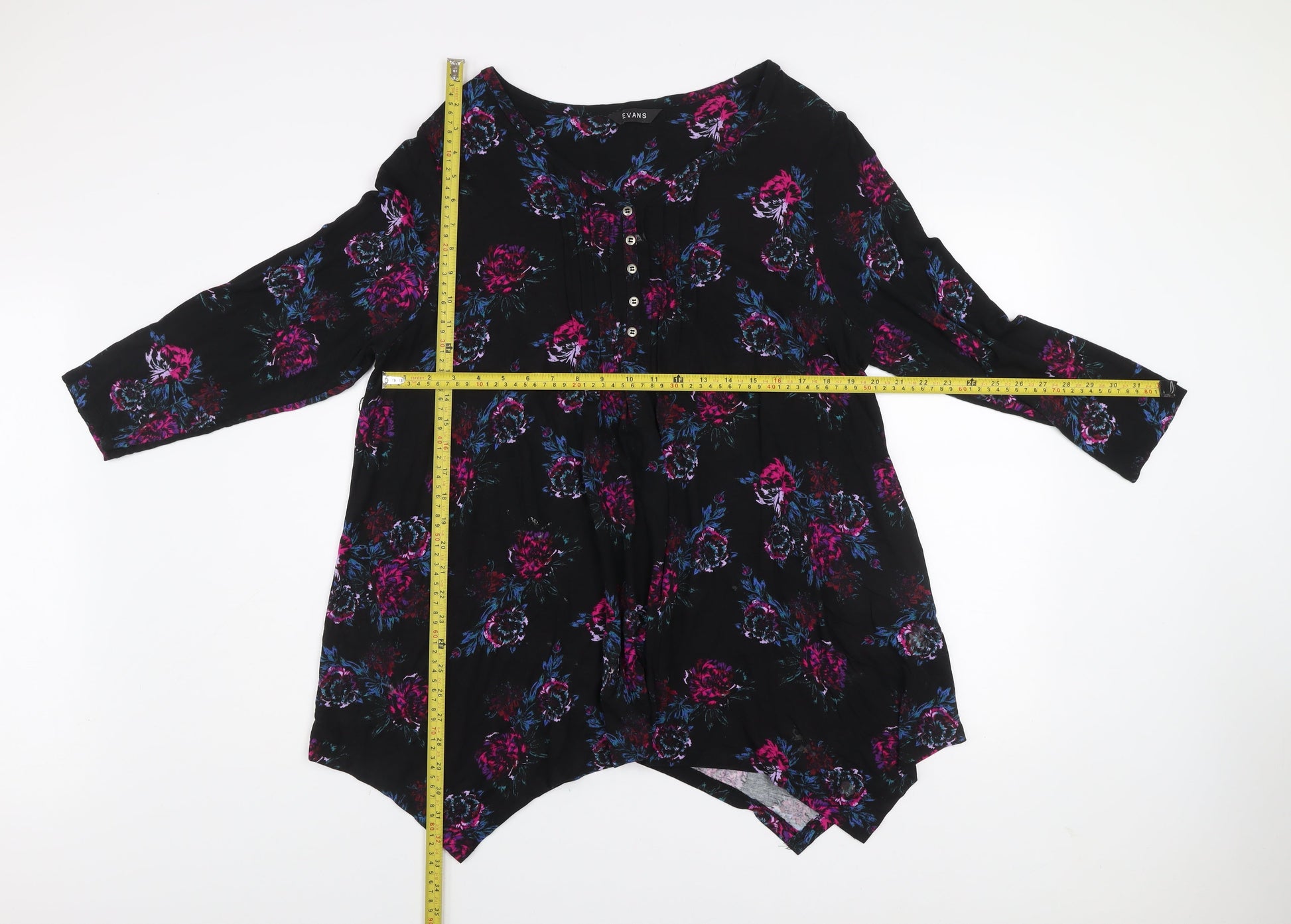 Evans Women’s Black Floral Tunic Blouse Size 20 Viscose 3/4 Sleeve