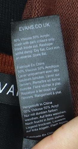Evans Women's Black 3/4 Sleeve Jersey Top Size 14