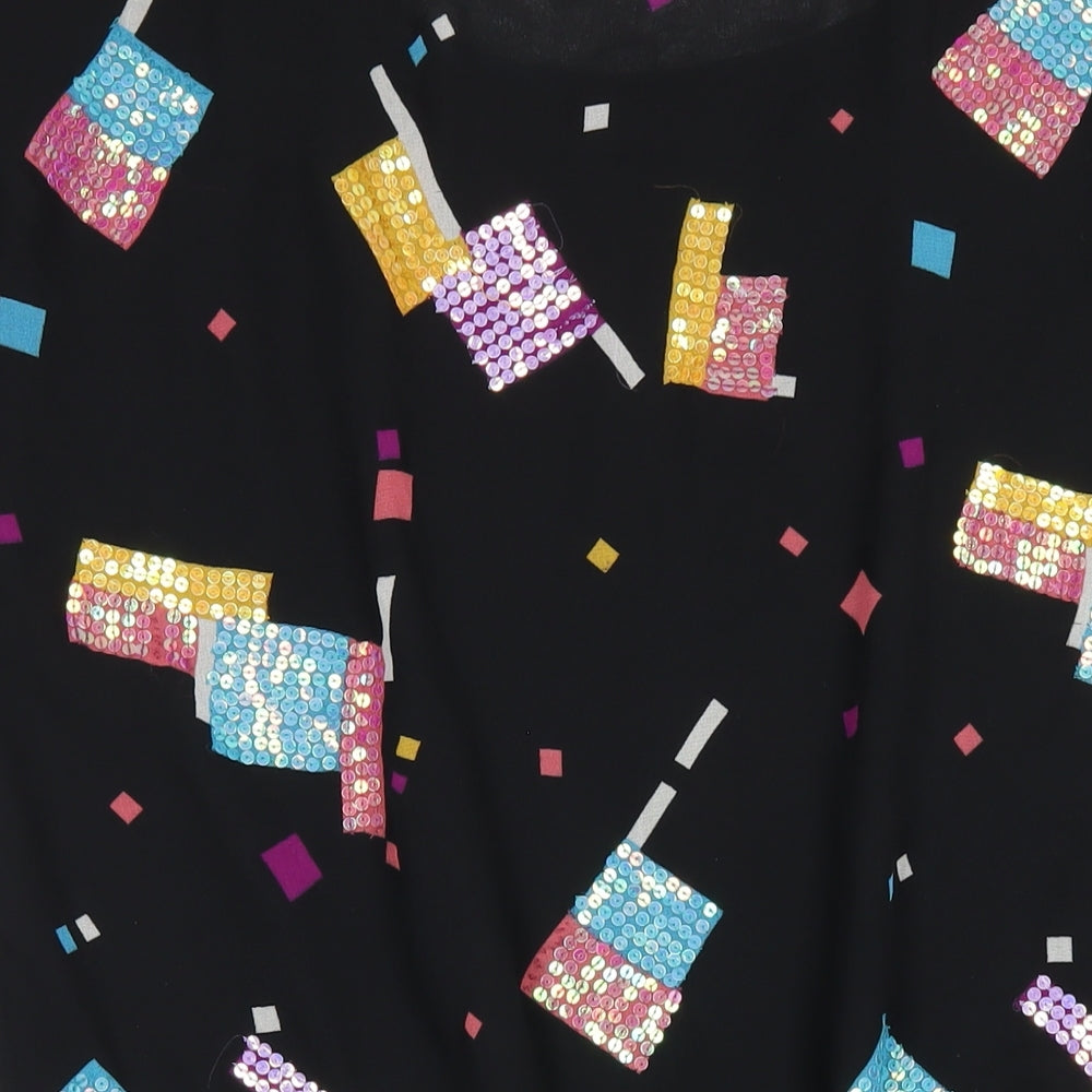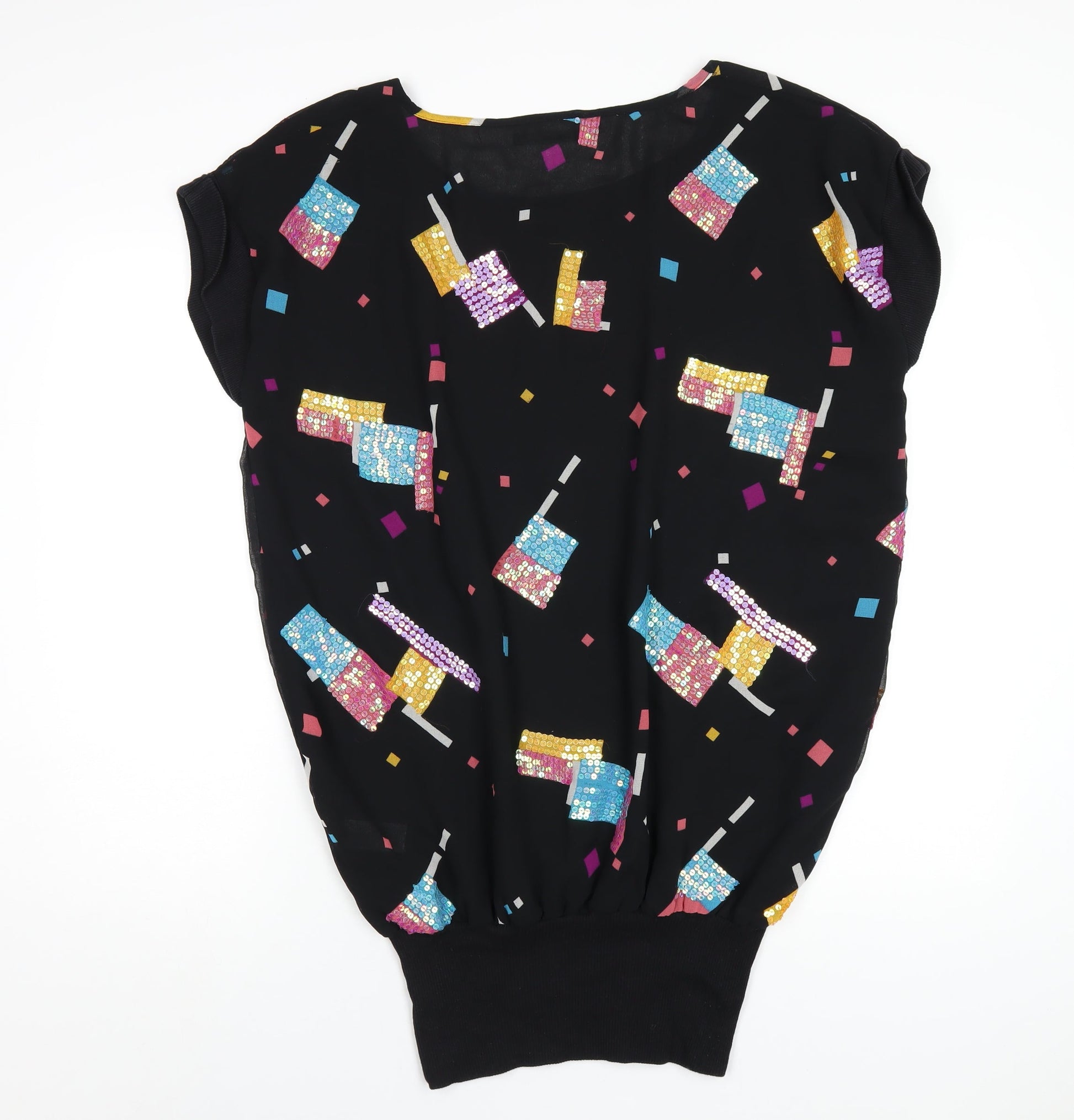 Evans Womens Black Geometric Polyester Basic T-Shirt Size 16 Round Neck