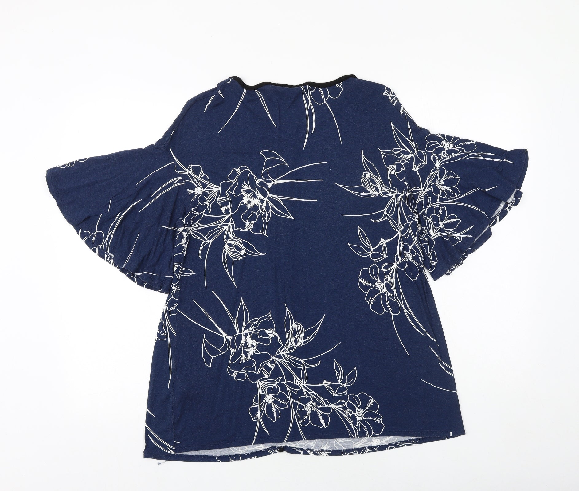 Evans Womens Blue Floral Viscose Basic Blouse Size 14 Boat Neck