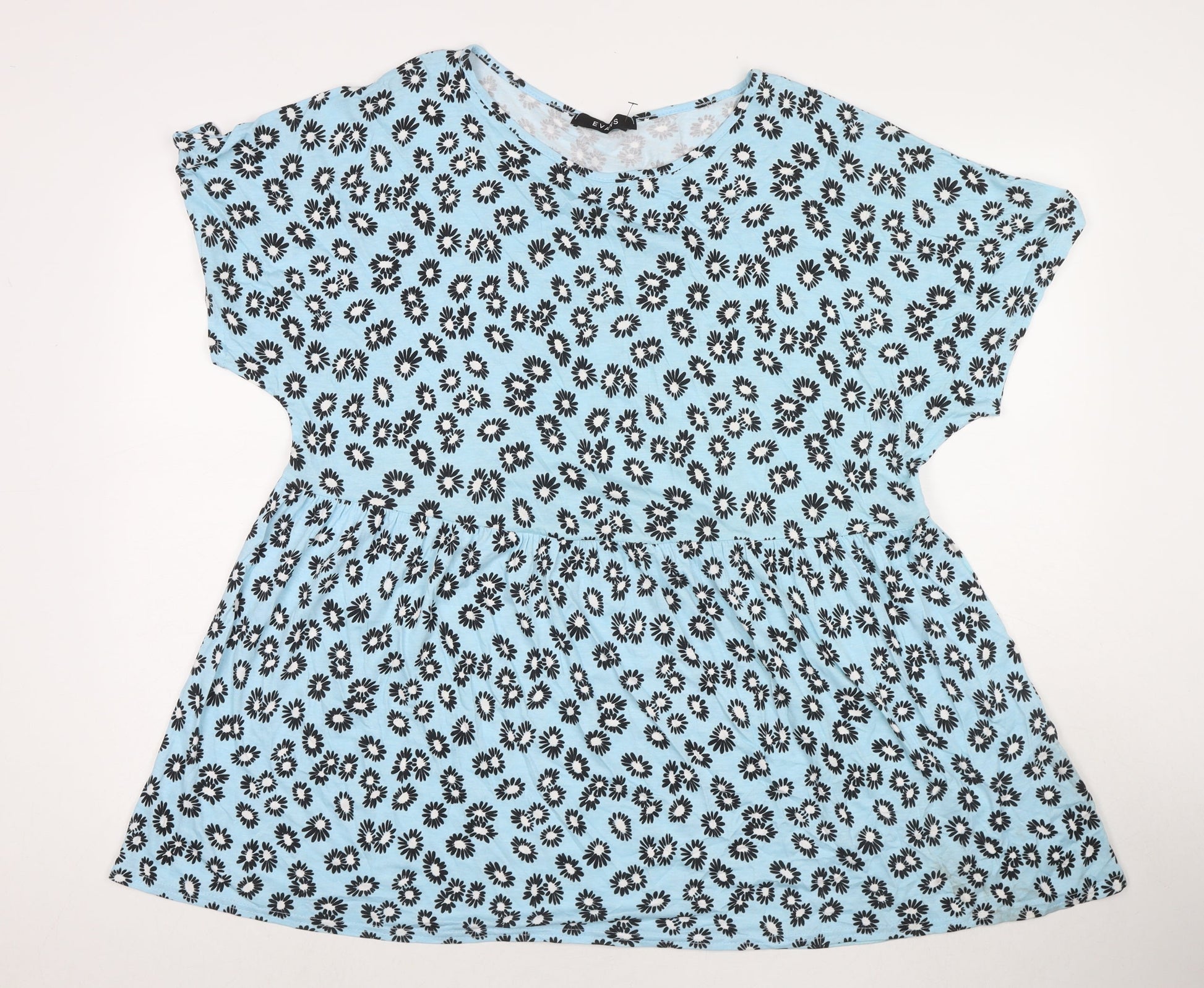 Evans Womens Blue Floral Viscose T-Shirt Dress Size 16 Round Neck Pullover