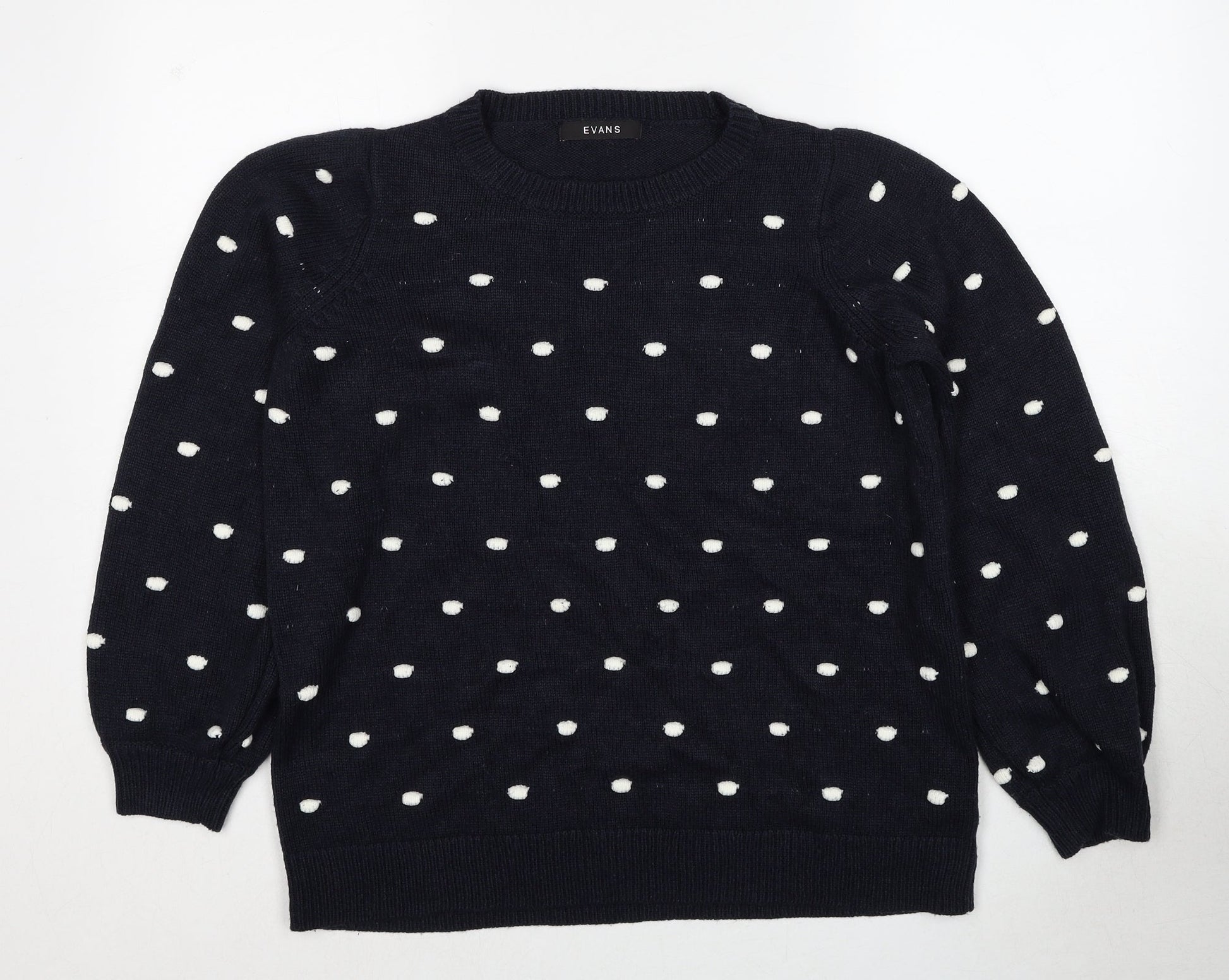 Evans Womens Blue Round Neck Polka Dot Acrylic Pullover Jumper Size 14