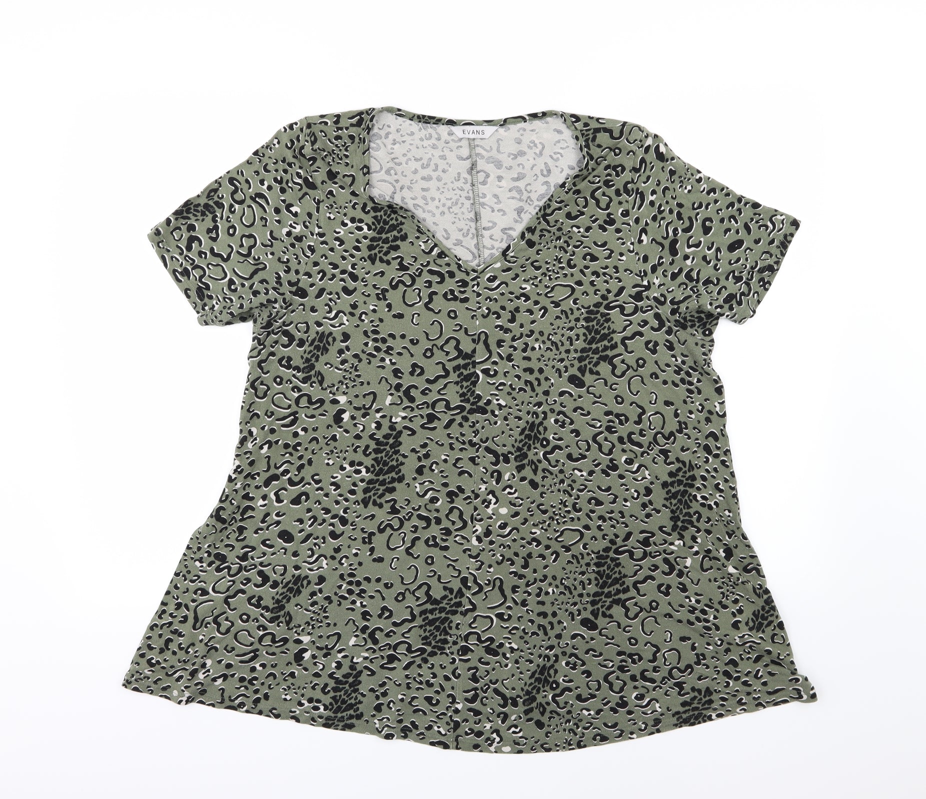 Evans Womens Green Animal Print Jersey Basic T-Shirt Size 10