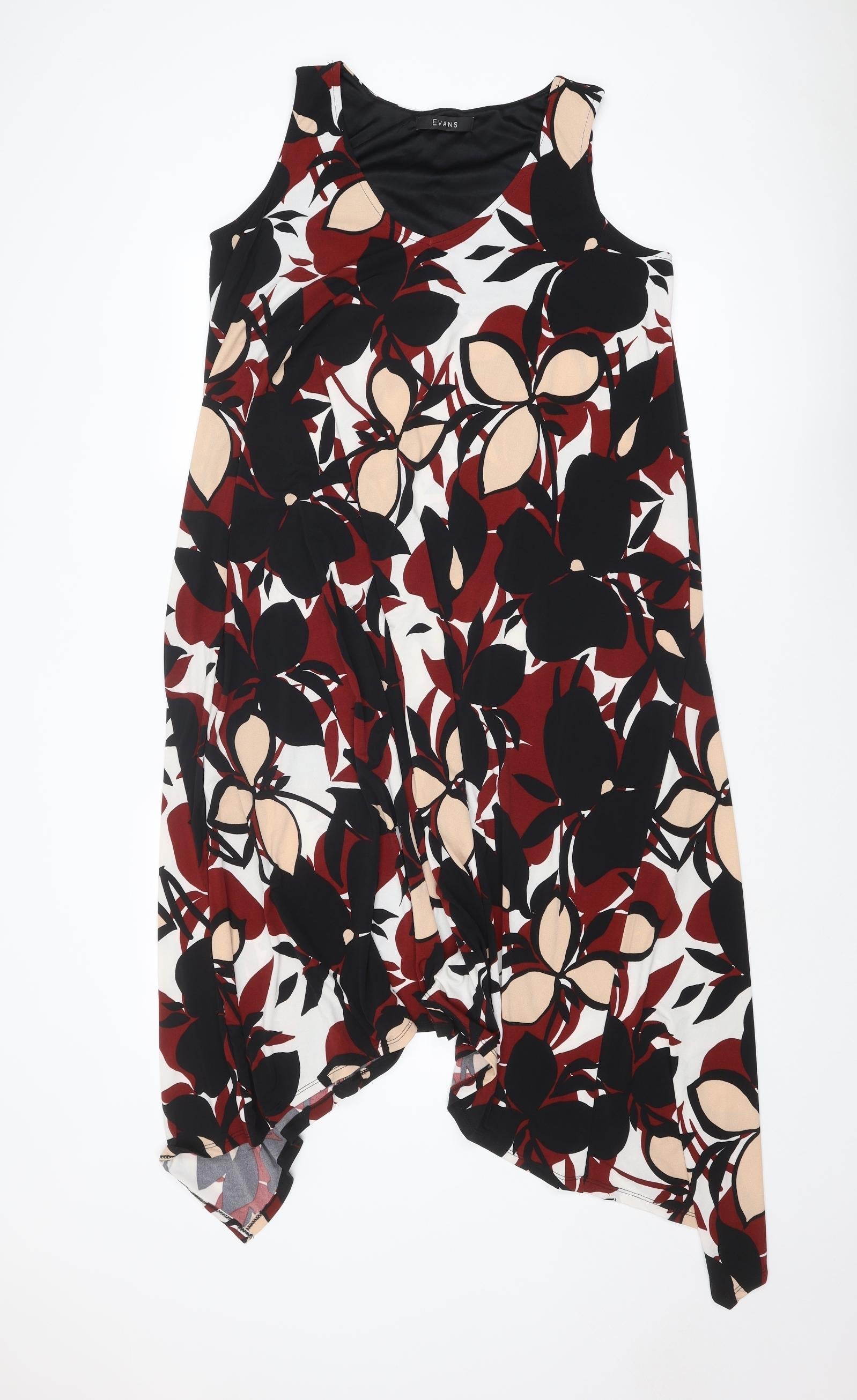 Evans Womens Multicoloured Geometric Polyester A-Line Size 16 V-Neck Pullover