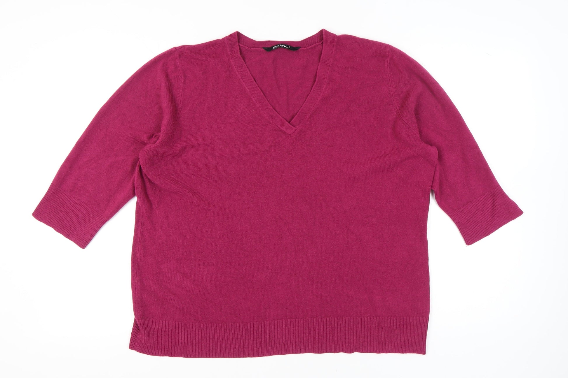 Evans Womens Plus Size 22/24 Pink V-Neck 3/4 Sleeve Jumper