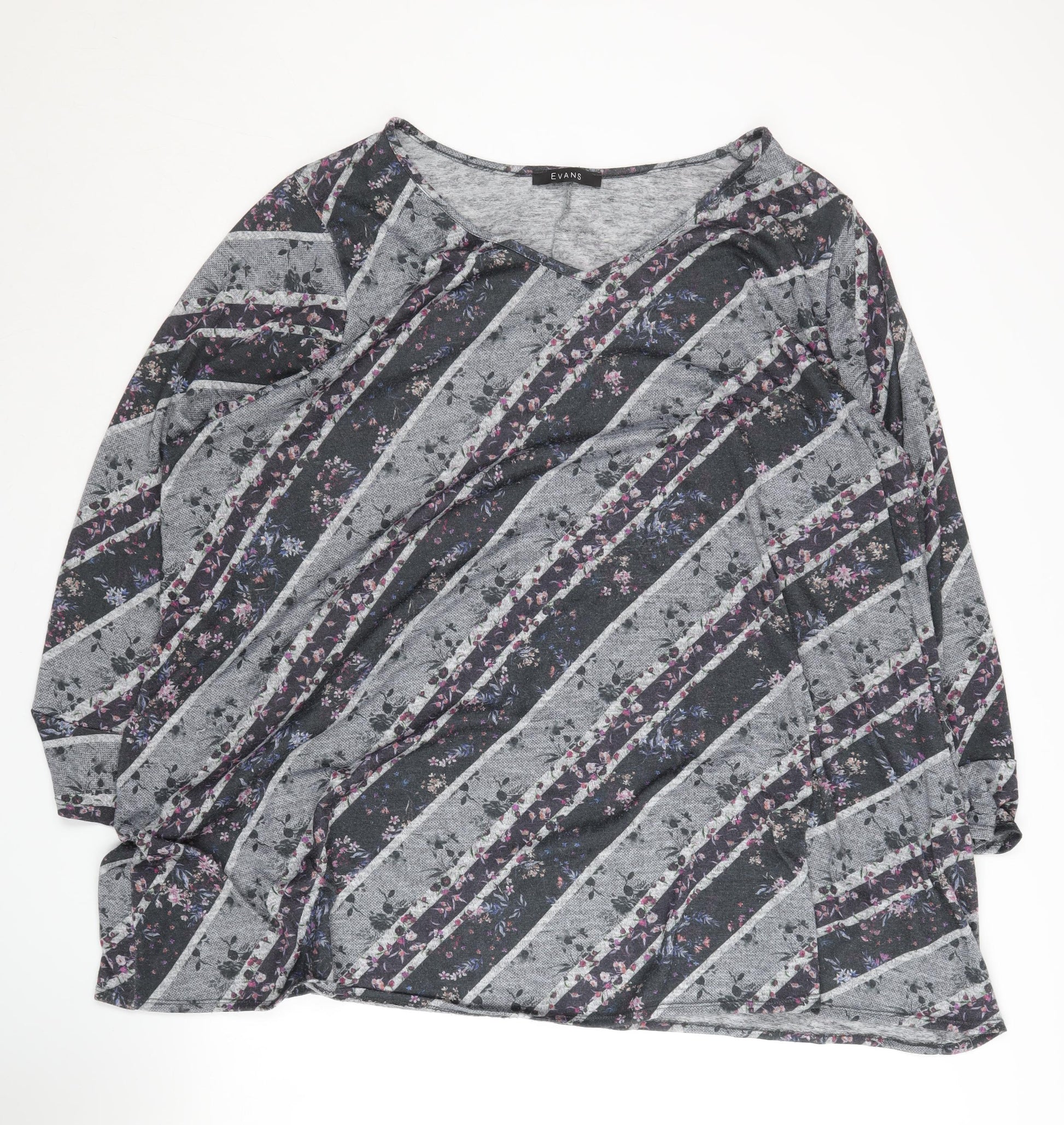 Evans Women's Plus Size Floral Grey Jumper 30/32