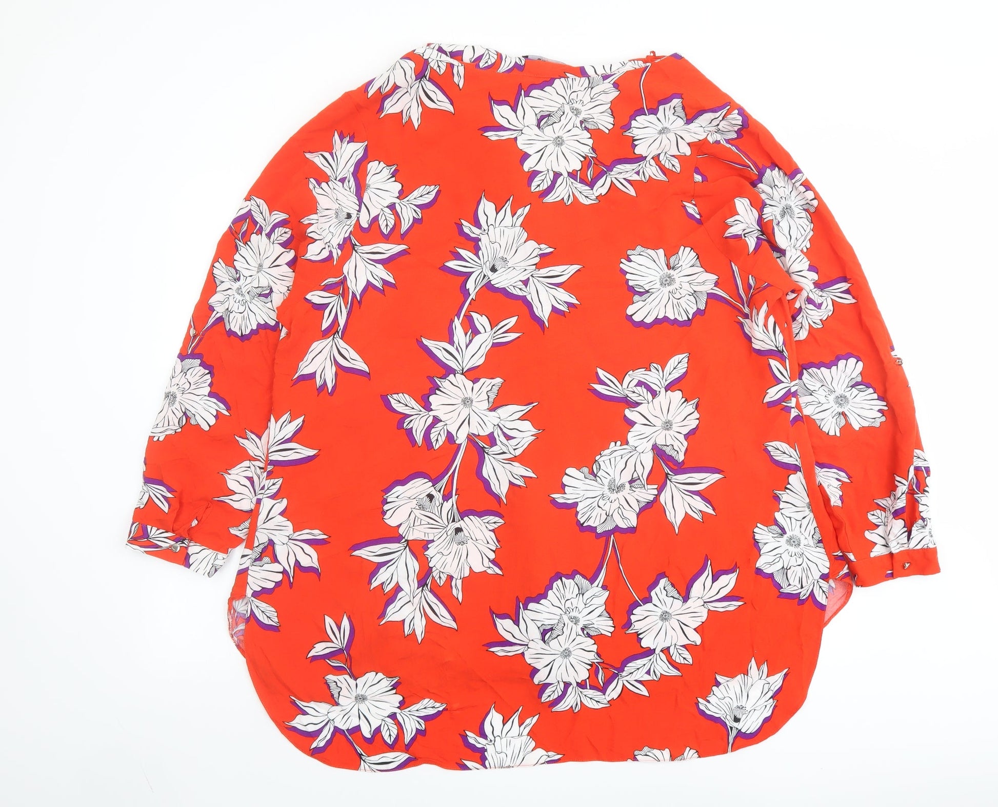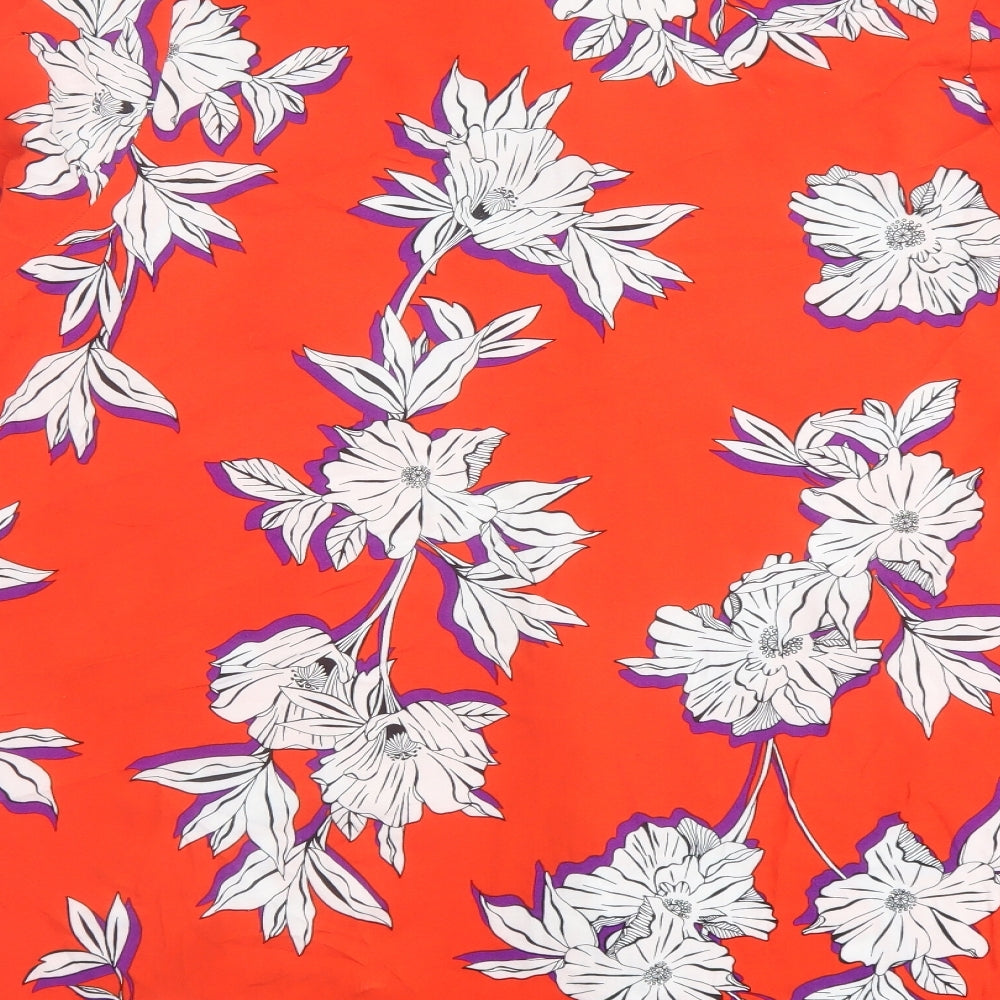 Evans Womens Red Floral Viscose Basic Button-Up Size 22 V-Neck