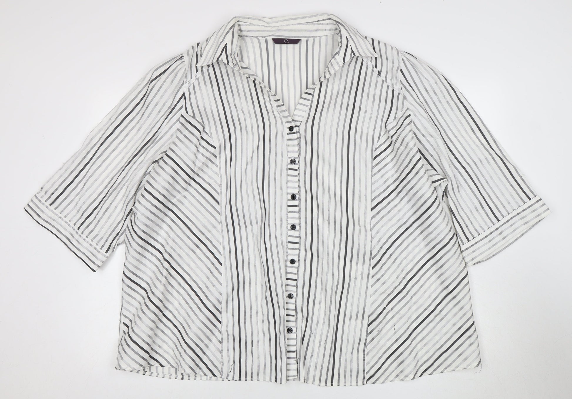 Evans Women's White 3/4 Sleeve Striped Button-Up Top