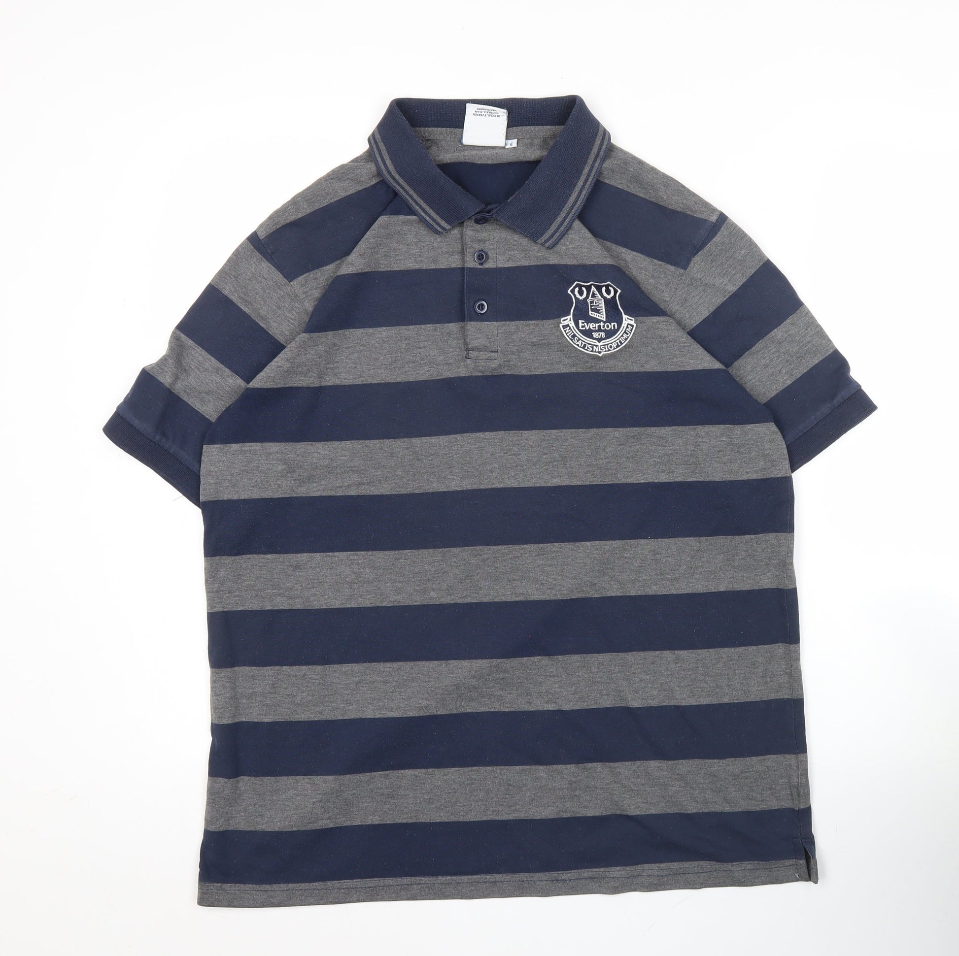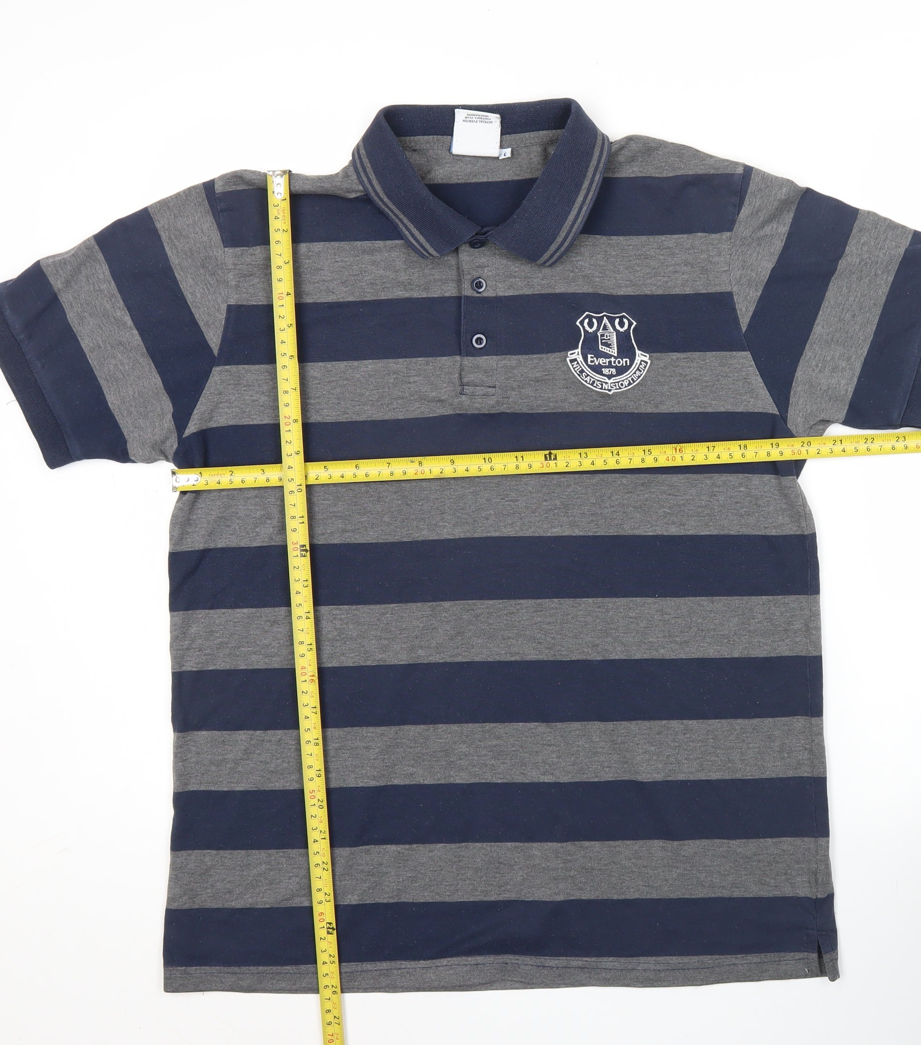 Everton Men's Grey & Blue L Polo Shirt Striped Football Casual Top