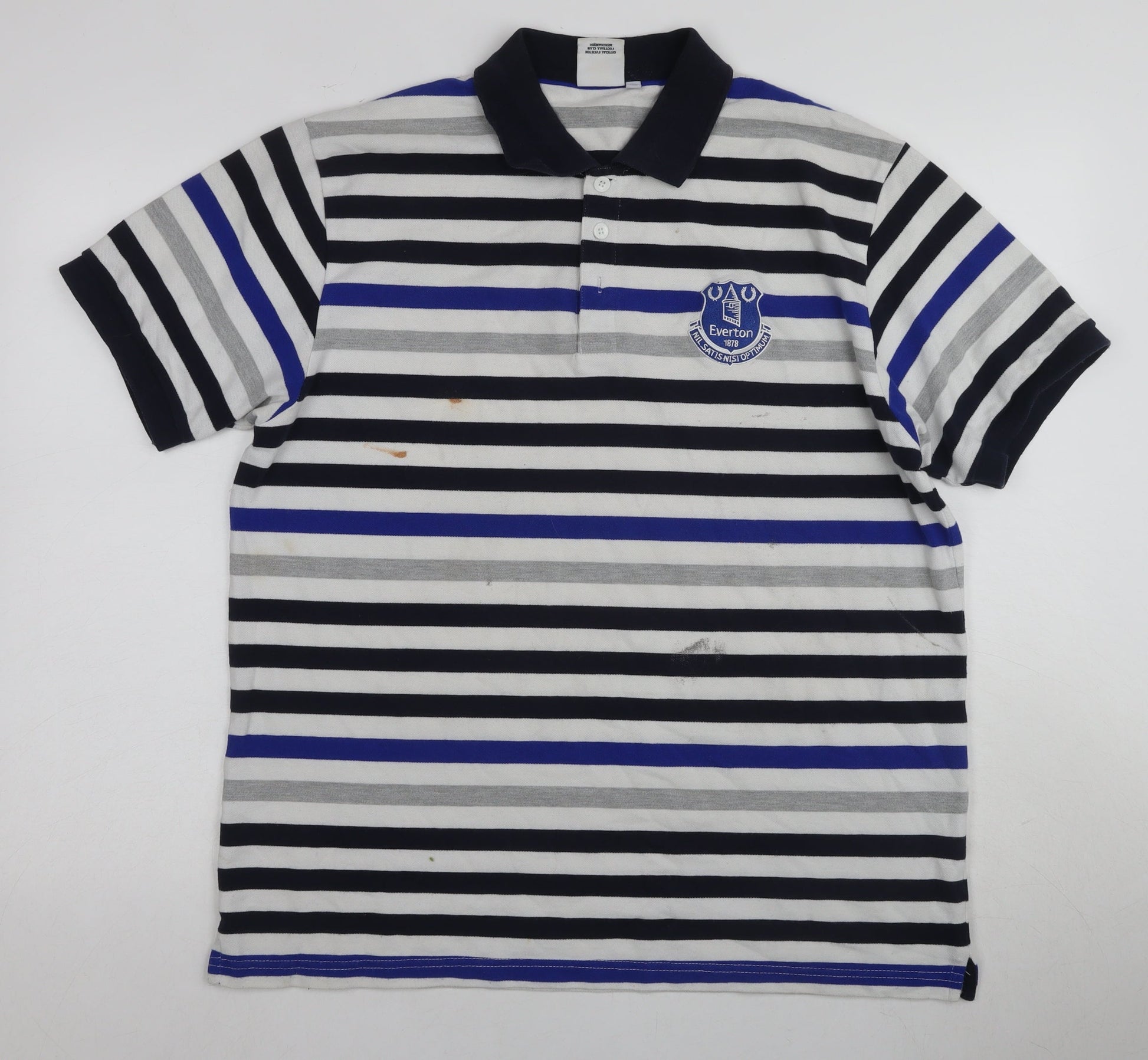 Everton Men's XL Multicoloured Striped Polo Shirt