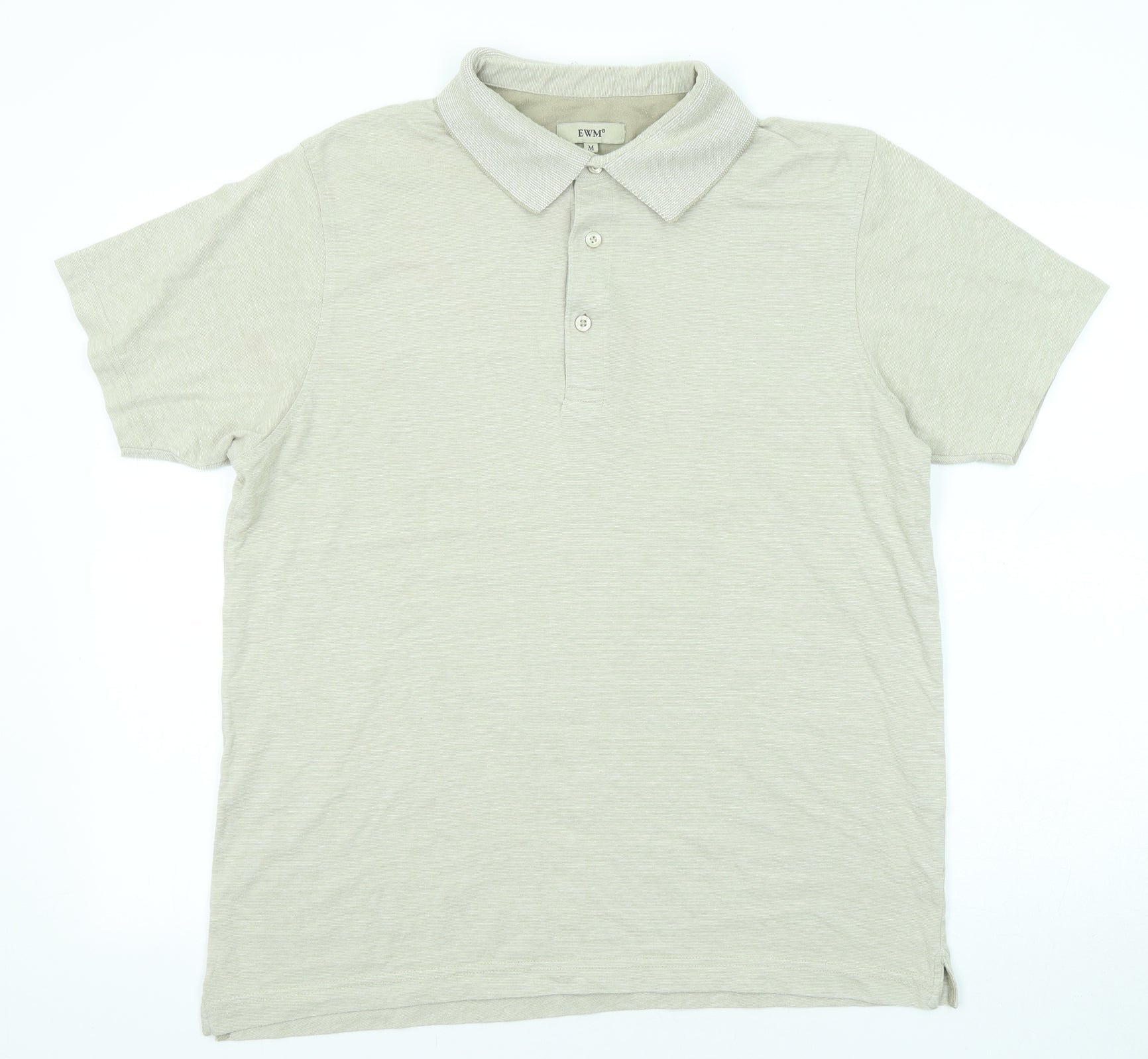 EWM Mens Beige Cotton Polo Size M Collared Button