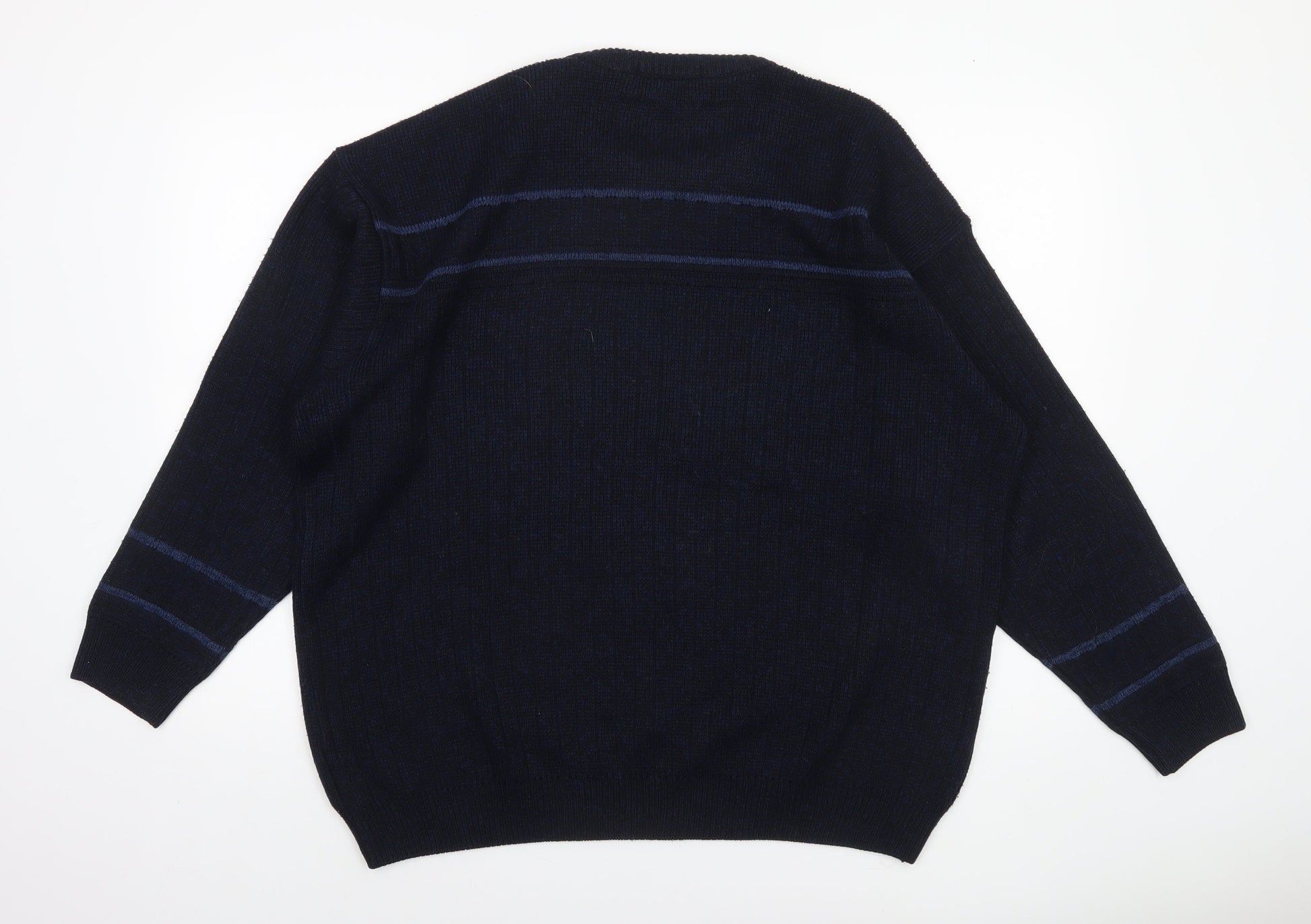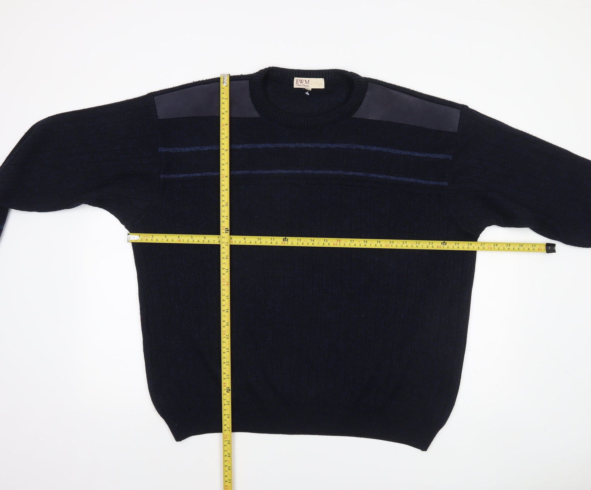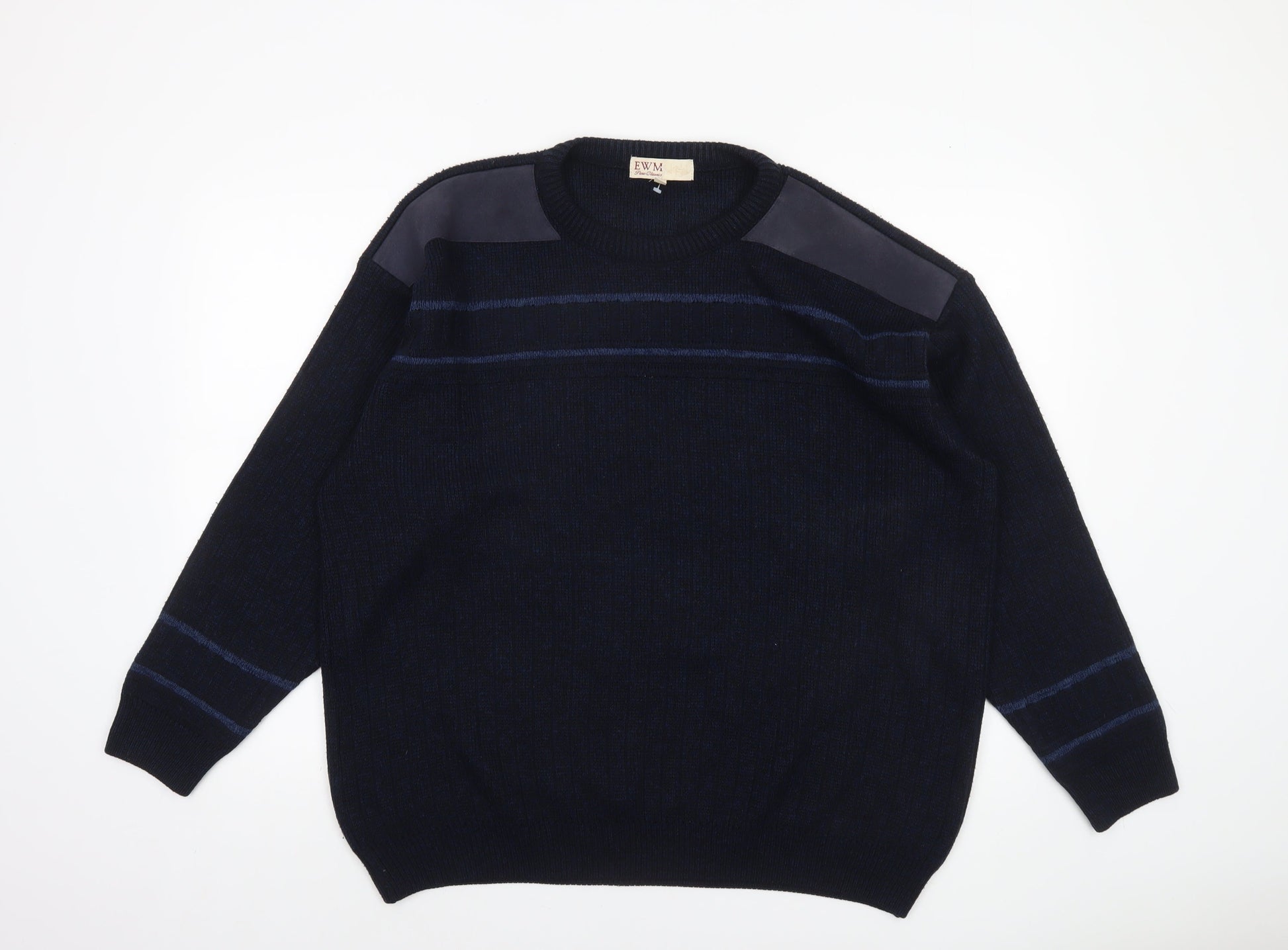 EWM Men's Blue Suede Shoulder Crew Neck Pullover Jumper L