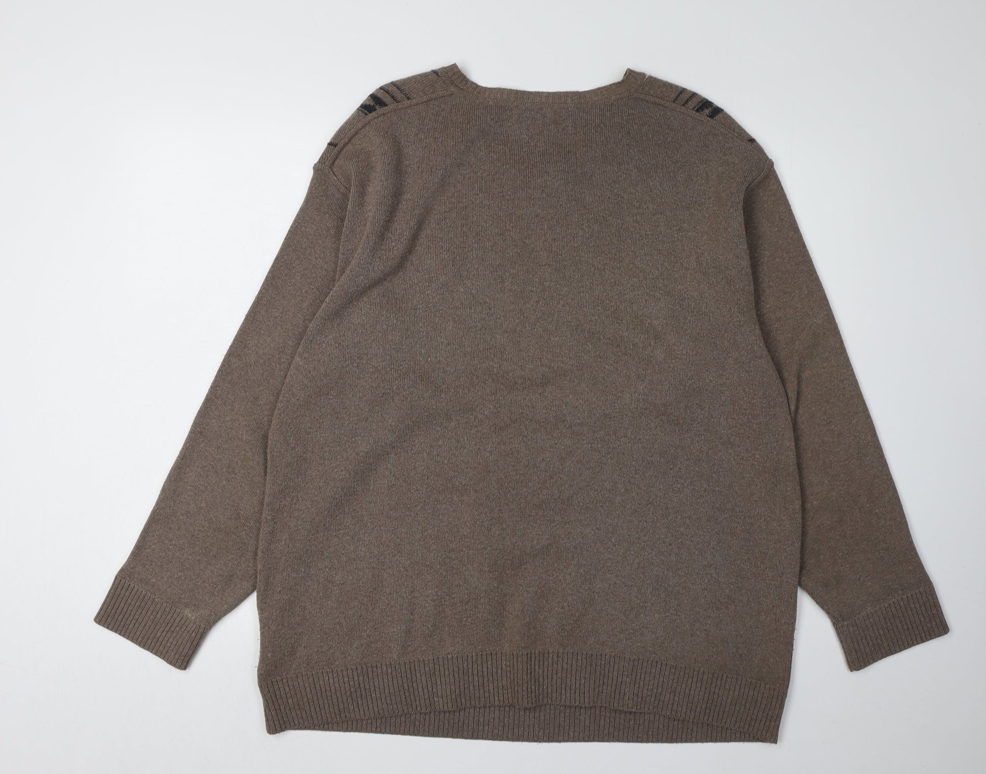 EWM Men's Brown Striped V-Neck Pullover Jumper L