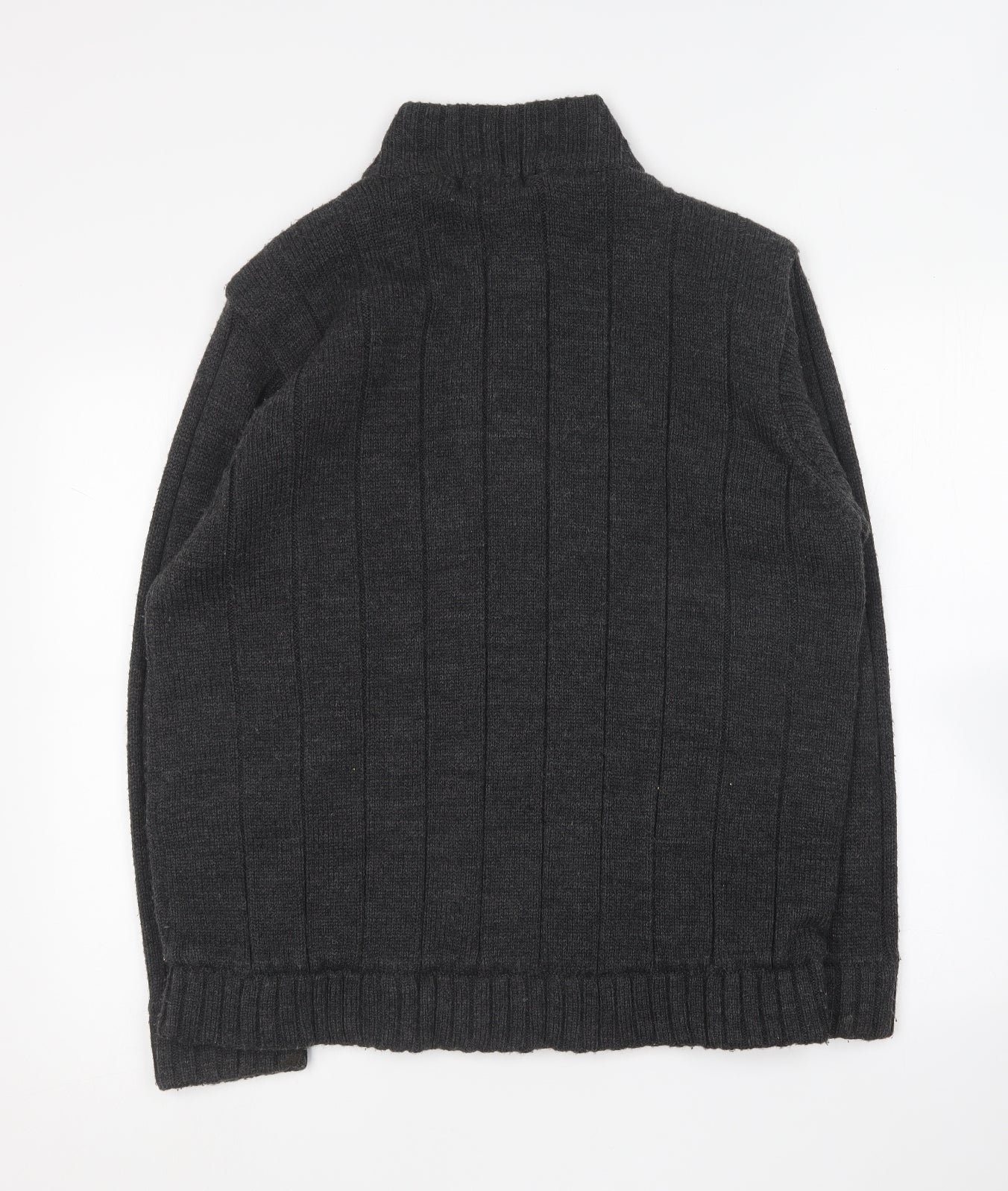EWM Mens Grey Collared Acrylic Full Zip Jumper