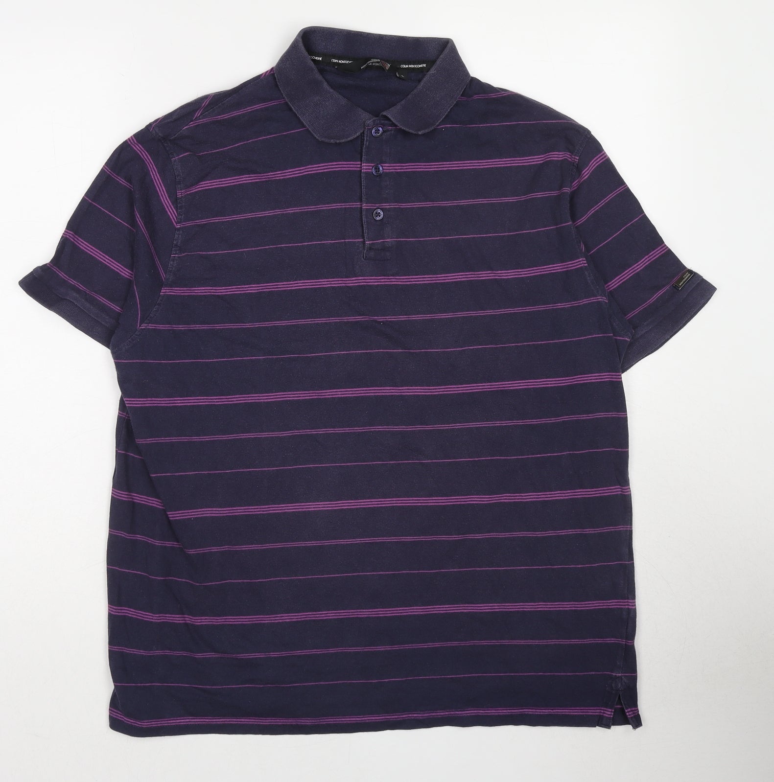EWM Mens Purple Striped Cotton Polo Size L Collared Pullover
