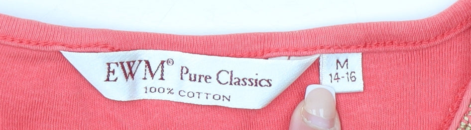 EWM Women Pink Embroidered Floral Cotton T-Shirt Size 14-16