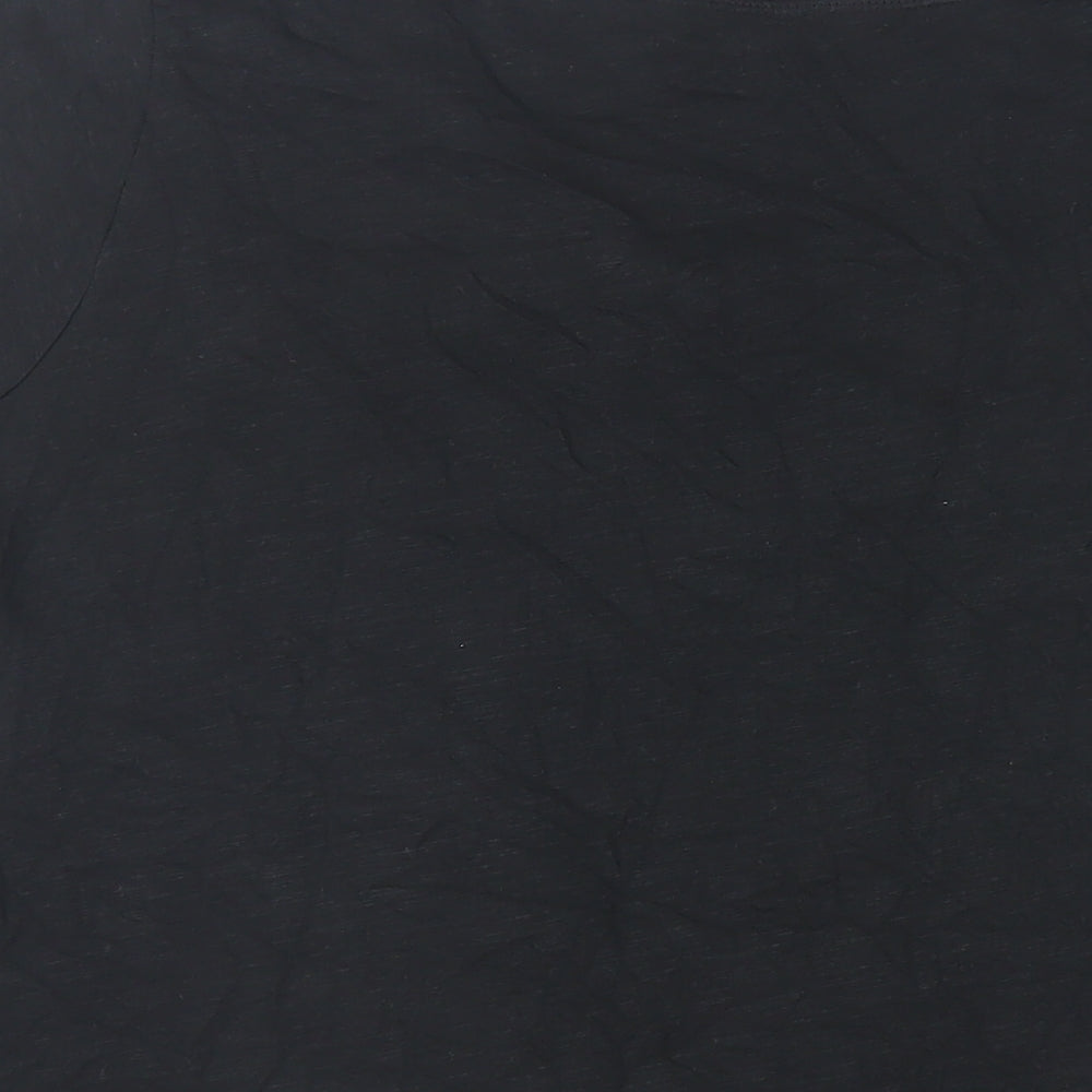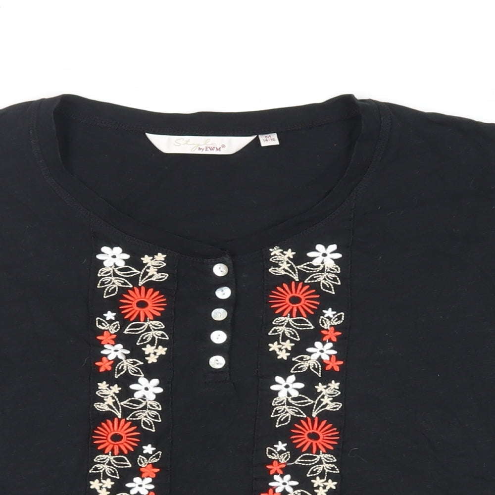 EWM Womens Black Cotton Basic T-Shirt Size 14 Round Neck - Embroidered