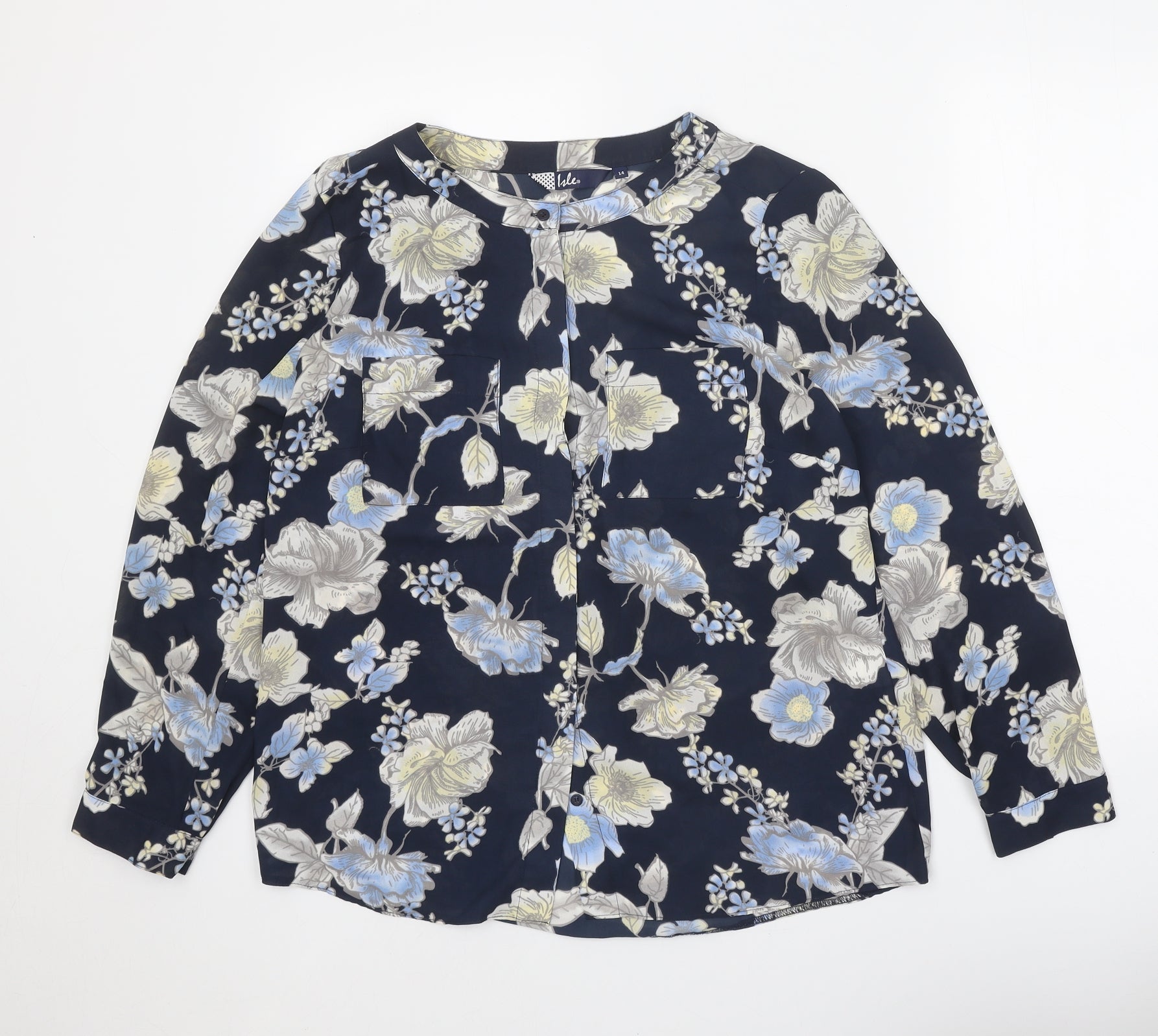 EWM Womens Black Floral Polyester Basic Blouse Size 14 Boat Neck
