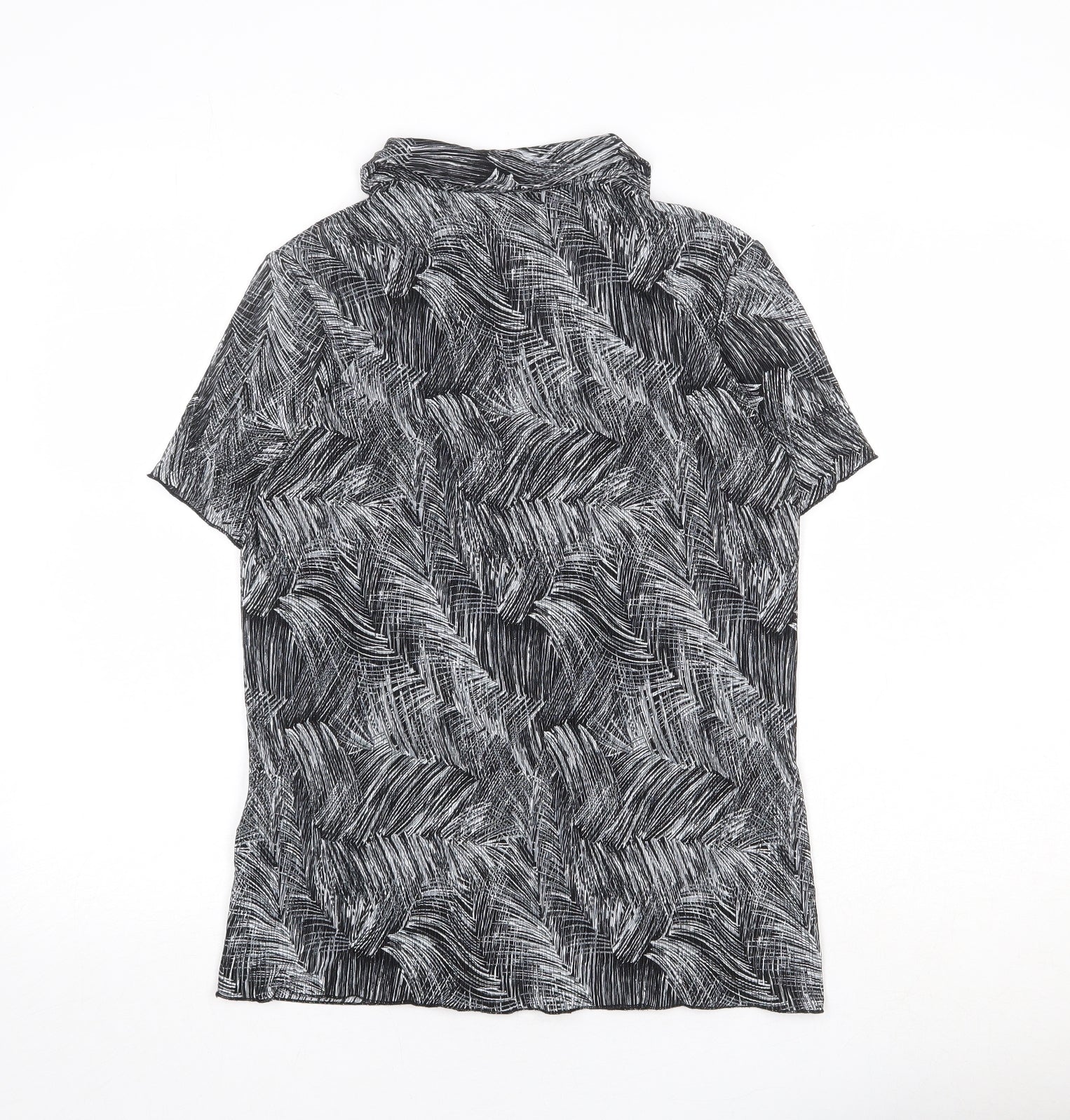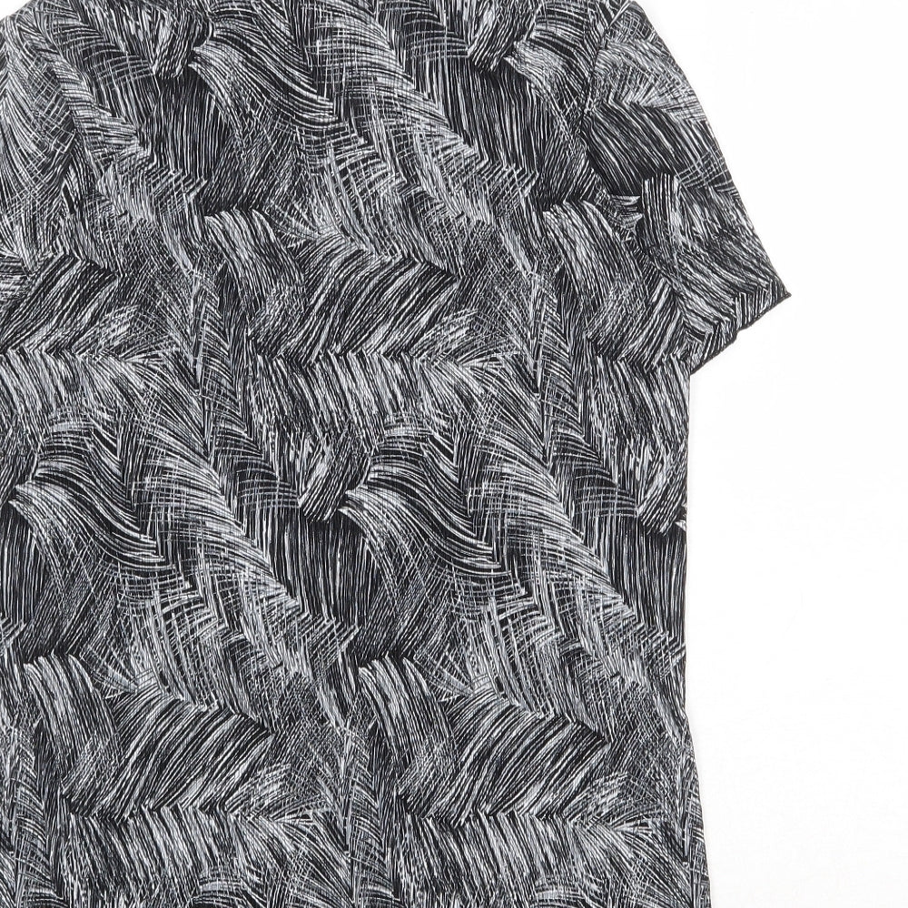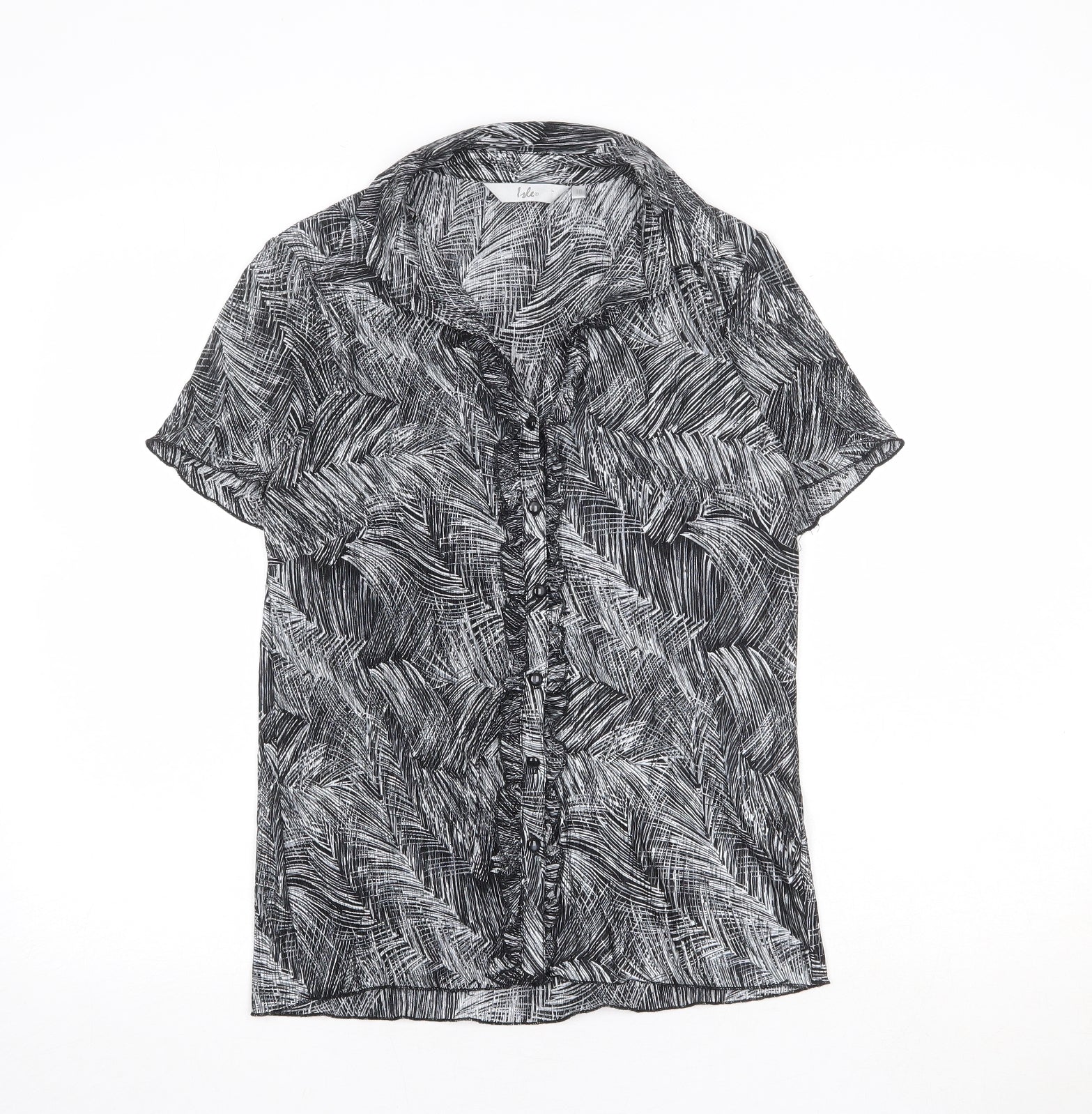 EWM Womens Black Geometric Polyester Basic Button-Up Size 10 Collared