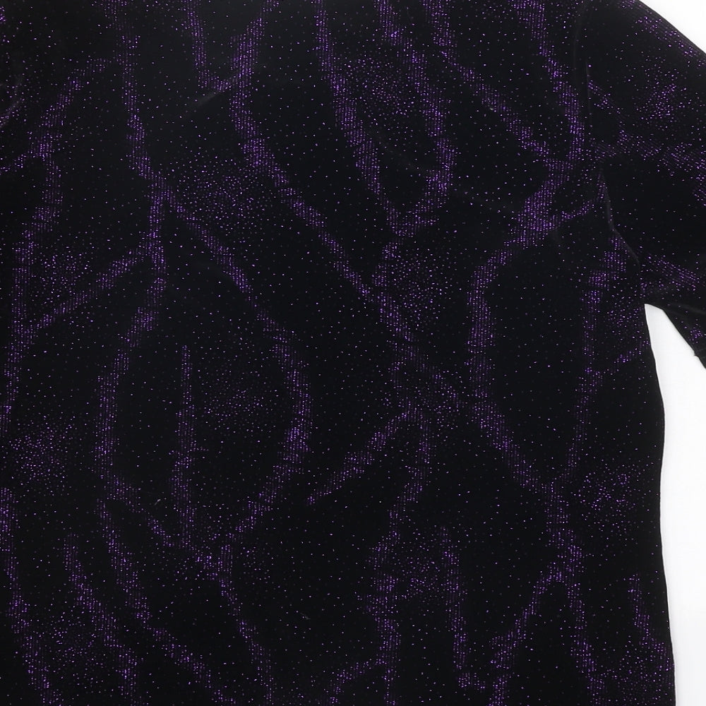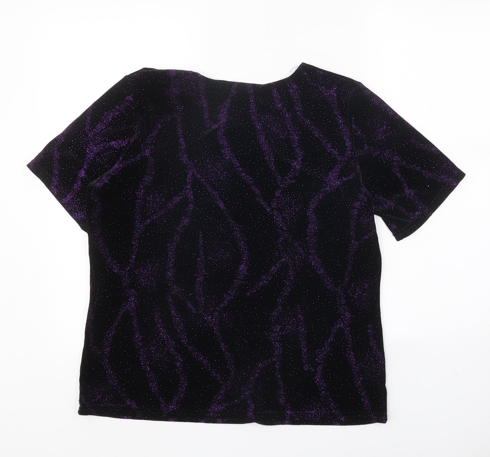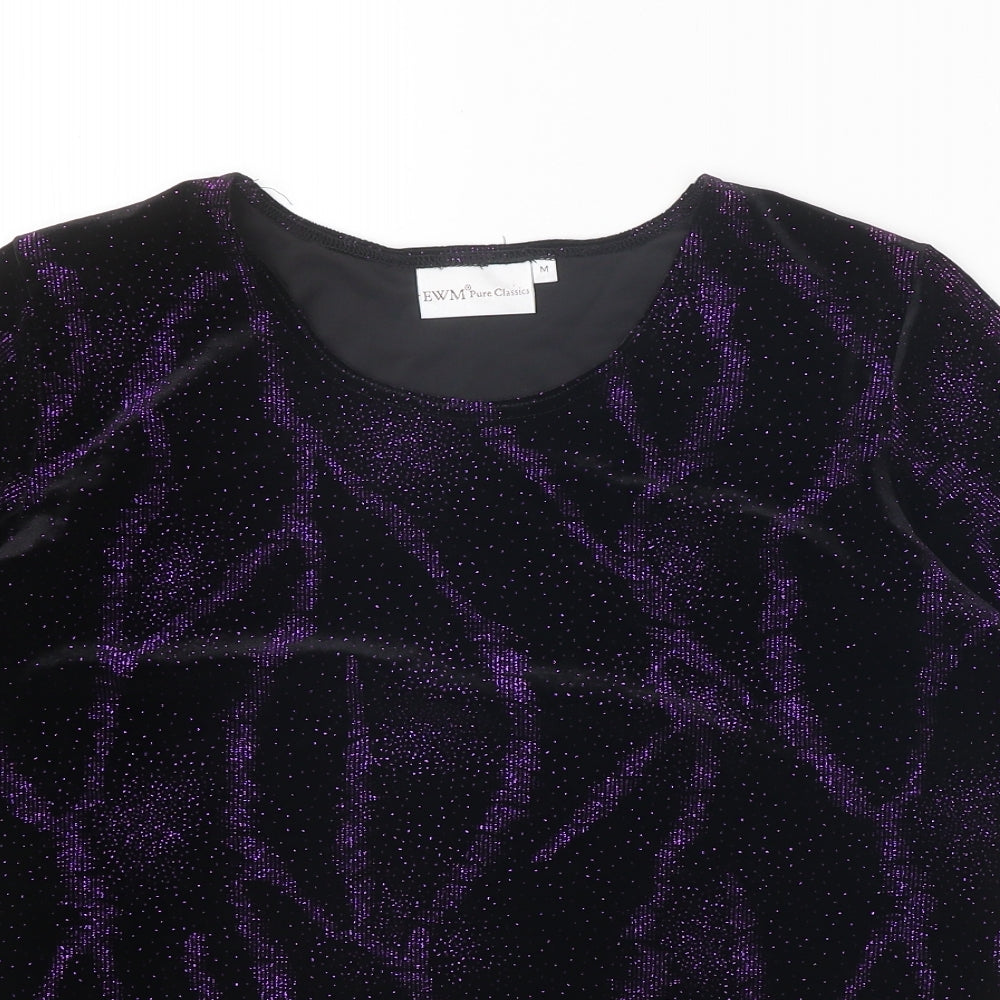 EWM Womens Black Geometric Polyester Basic T-Shirt Size M Round Neck