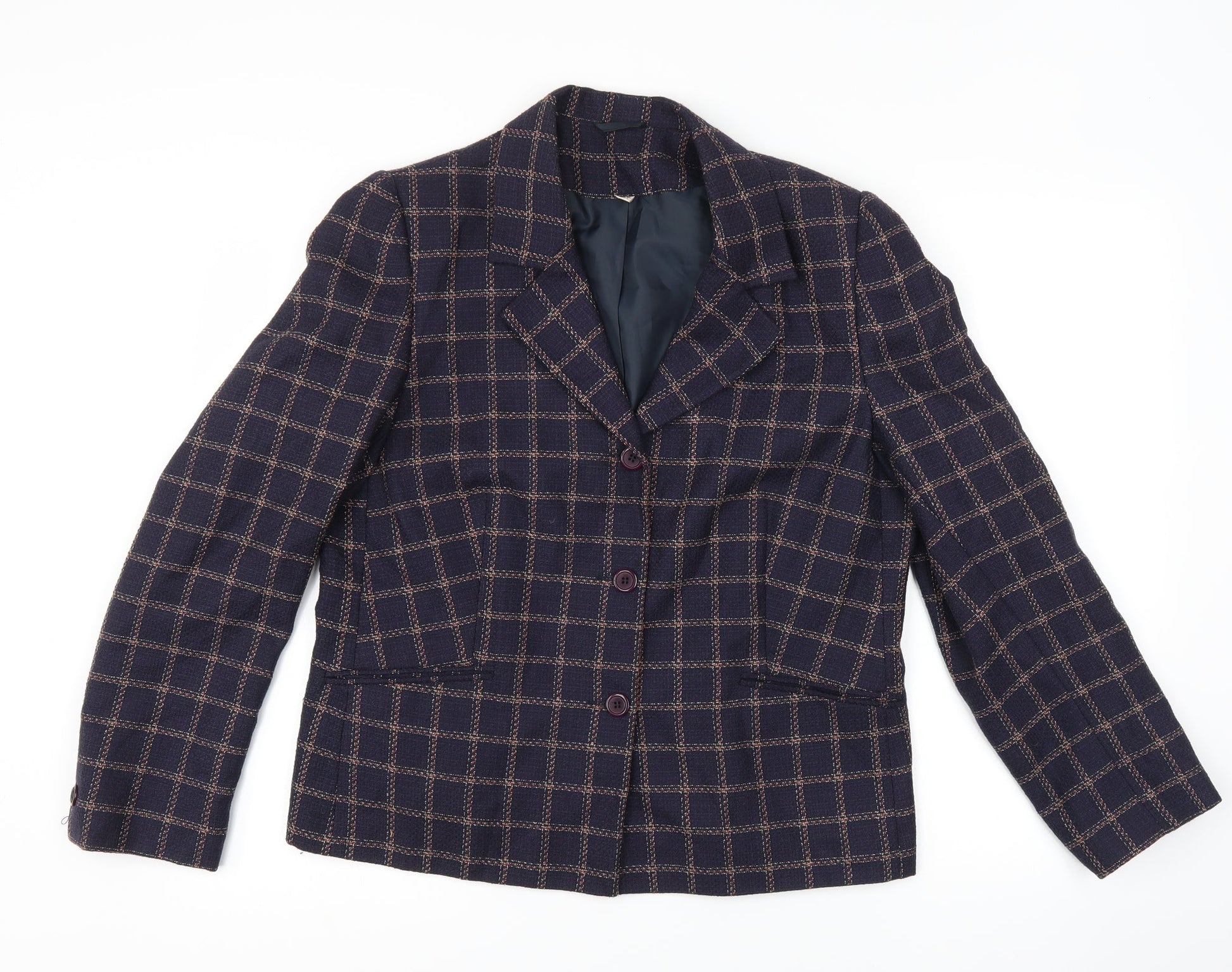 EWM Womens Blue Check Jacket Suit Jacket Size 14