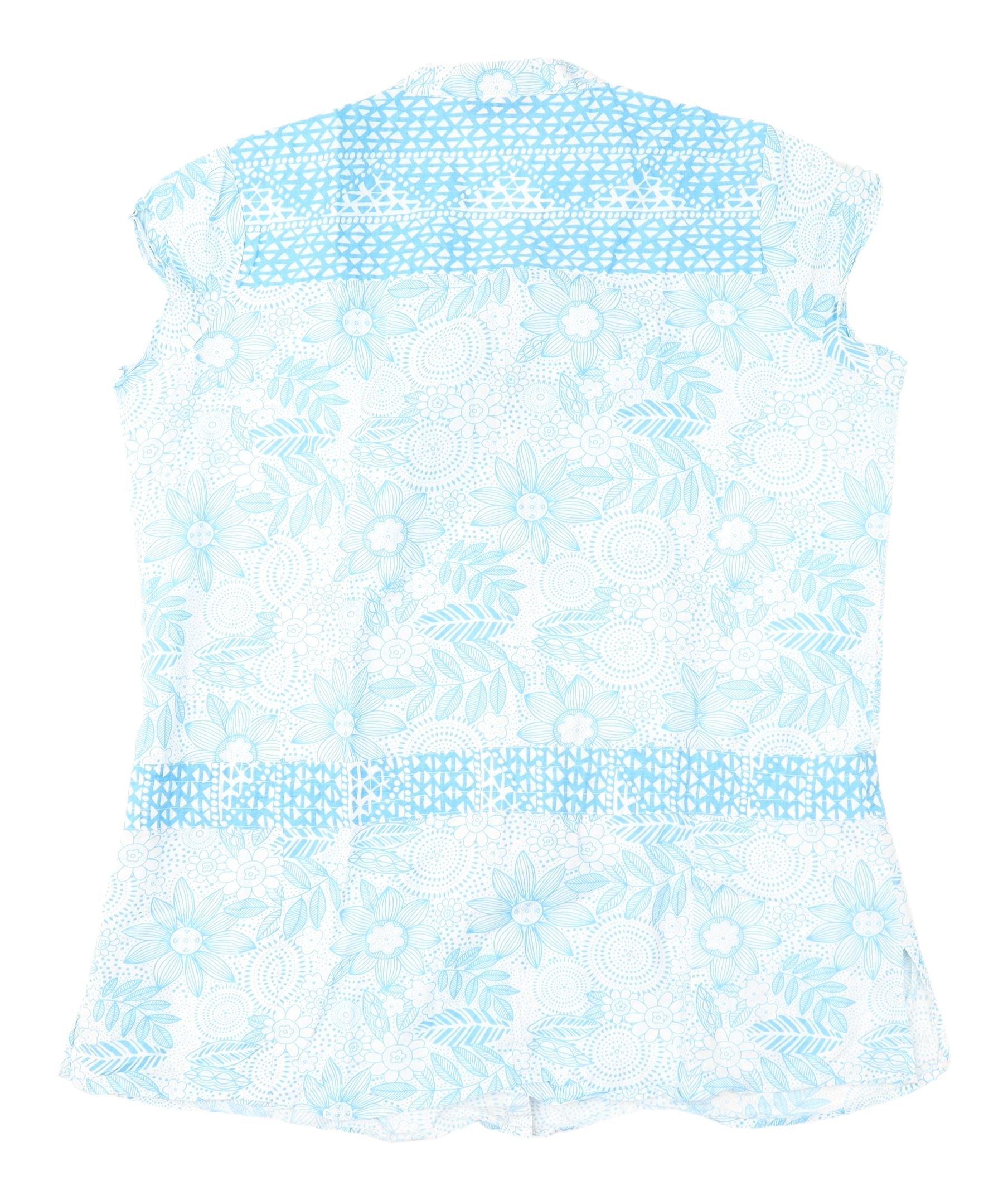 EWM Women's Blue Floral Sleeveless Blouse - Size 18