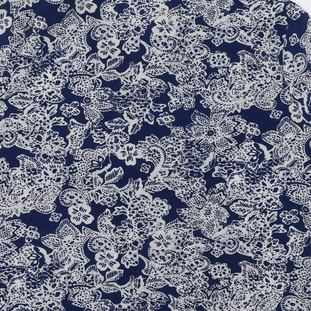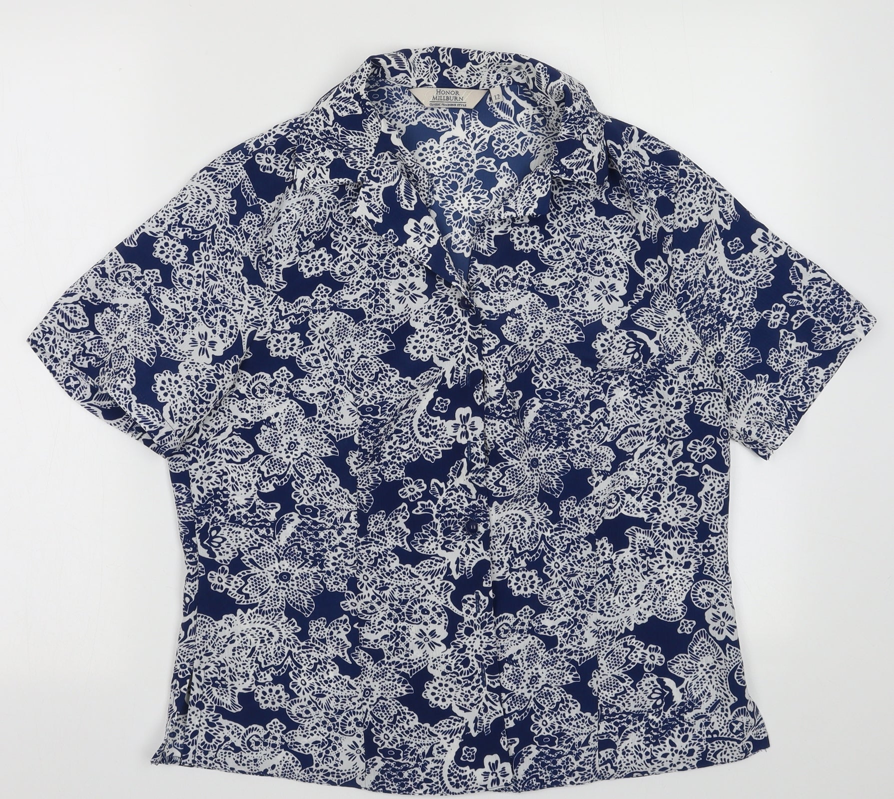 EWM Womens Blue Geometric Polyester Basic Button-Up Size 12 Collared