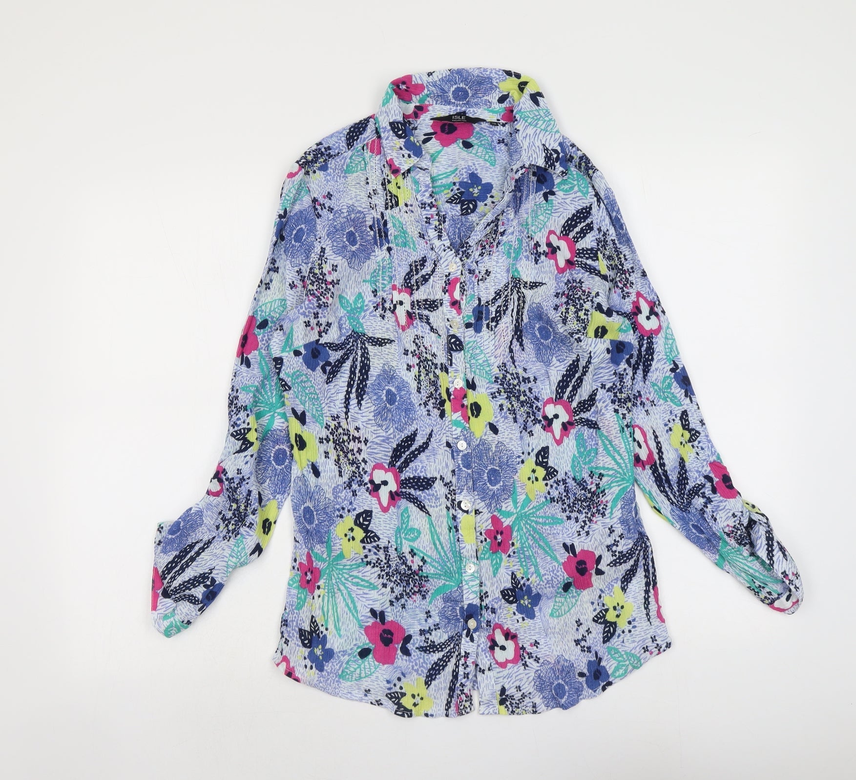 EWM Womens Blue Geometric Polyester Basic Button-Up Size 12 Collared